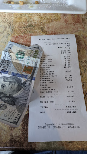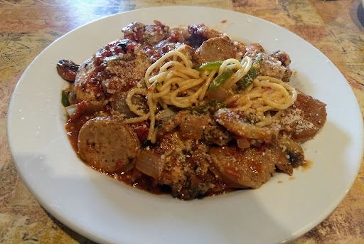 The server we had was very kind. No alcohol, not that its their fault. We ordered the fried calamari to start and the our entrees were Chicken Tuscany and Chicken Piccata. We received our salads before the appetizer as if it was policy to do so. It was a plate of bagged lettuce with 2 sliced cherry tomatoes. The calamari was served with no tentacles and the sauce seemed to be just a can of crushed tomatoes. The Chicken Tuscany looked like "the dogs dinner". The sauce seemed to be ladled on a pile of spaghetti in an unattractive manner. The chicken was frozen chicken tenders that had been grilled. The chicken Piccata was presented with to many capers and an off color sauce. The lemon butter sauce was not a bright vibrant color and barely had a hint of lemon. Chicken piccata should be served with hammered chicken breast that was been floured and pan fried. This chicken was the same frozen chicken tenders that were grilled as was in the chicken tuscany. Both dishes were tasteless and unattractive. We shared our dislike of our dishes and as if it was policy our server said we are welcome to speak to the owner about it. We were not offered an alternative. It seemed to be an aggressive response to our otherwise honest opinion of our meals. We decided to avoid any further uncomfortable interactions asked for boxes, paid, left and agreed we would not...