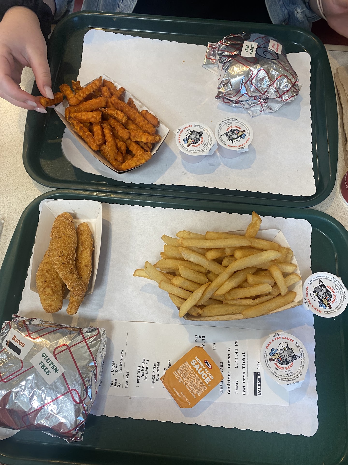 Ā Ā Ā Read moreMy friend and I both drove up from Salt Lake. We were both Recently diagnosed celiac and super excited to finally go out to eat at a place that we felt safe. When it came time to get our order taken, Susan took our order. I ordered a hamburger with a gluten-free bun chicken strips fries and a drink. My friend ordered a hamburger and sweet potato fries also gluten-free. I also have a pretty severe dairy allergy so when I saw on my receipt that it had mentioned American cheese I wanted to confirm that it actually was not going to be on there because I am allergic. Susan got really short with me and very rudely said āitās clearly a subtraction we know what weāre doing here everyone has celiacā. Iāve never been here before so how am I supposed to know if itās being taken off when it just says American cheese below my burger on the receipt. While I appreciated her informing me of that Her response was very short and offputting. I feel like if everyone who works there has celiac they should at least understand the feeling of discomfort and nervousness is normal especially when eating out because you donāt want to get glutenated. We drove almost an hour to be here and it just put a huge damper on our meal because I was made to feel stupid for double checking my order. The food was good, but I probably wonāt be back because I didnāt appreciate how she made me feel. That really sticks with a person. I want to feel excited to eat out and I still feel upset about her response and rudeness. Hopefully Susan can realize that itās normal for us to double check our order with food allergies, and that she should be kind and gracious especially to people with food allergies because theyāre coming pretty far out of their way to get to...