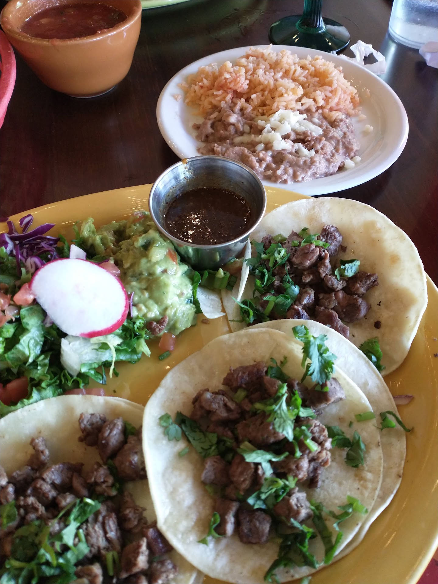 Read moreHit and miss here..... The tacos are always good, but the service can really be missing sometimes, and pretty sure I got intentionally over charged once so someone could pocket some extra cash. I mean, she couldn't produce a receipt, couldn't explain the charges, etc. I would have made a big deal of this but was entertaining guests from out of the country and that was the last thing I wanted to do was make a deal of a few dollars. Some nights the service is great with quick food, friendly wait staff, quick drink and chip refills.... Other nights it's no chips at all, spend the night looking at the bottom of your cup, slow service. Prices are good though and it's a fun place to visit. Just wish the service was...