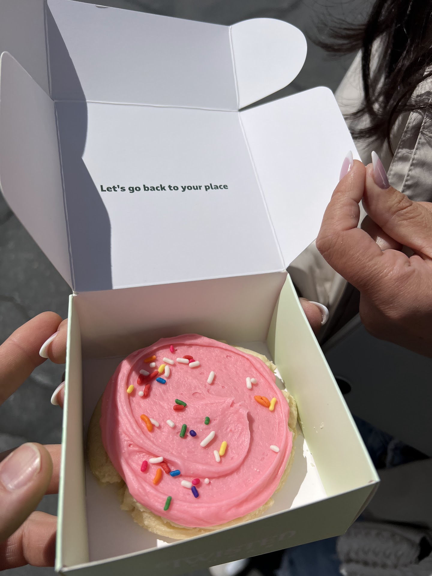 Read moreThought I would try your cookies, I was very disappointed! (Delivered) First the cookies were cold, like right out of the fridge cold. The chocolate chip, was the shape of a scoop, that was half cooked. It was like taking a bite of cold uncooked cookie dough. You could taste the uncooked sugar crystals. I was under the impression your cookies were baked fresh, sad to learn they are not . When I spoke to your employee, I was told that they were just 18 and worked there. Just love your...