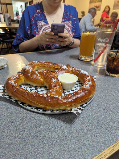 Read moreIn a group of six on a Saturday night, visiting for the first time. We all enjoyed one GIANT pretzel together, it was great, and make sure you order extra queso! All our food was hot and delicious, and the leftover chicken fried chicken and mashed potatoes I took home, was great reheated. Forks and butter knives on the table in glass jars was a neat idea, and it was nice having a roll of paper towels on the table since some of us are messier than others. Never found any spoons, but only the youngest (age 8) in our group wanted one so we didn't ask, and we found the steak knives in a canister by the coffee station, where we helped ourselves. Our waitress was super nice and attentive, although she seemed to have the entire restaurant to cover by herself, plus answer the phone. She was great! The women's restroom (for one person at a time) was spacious, clean, well stocked, and locked easily.