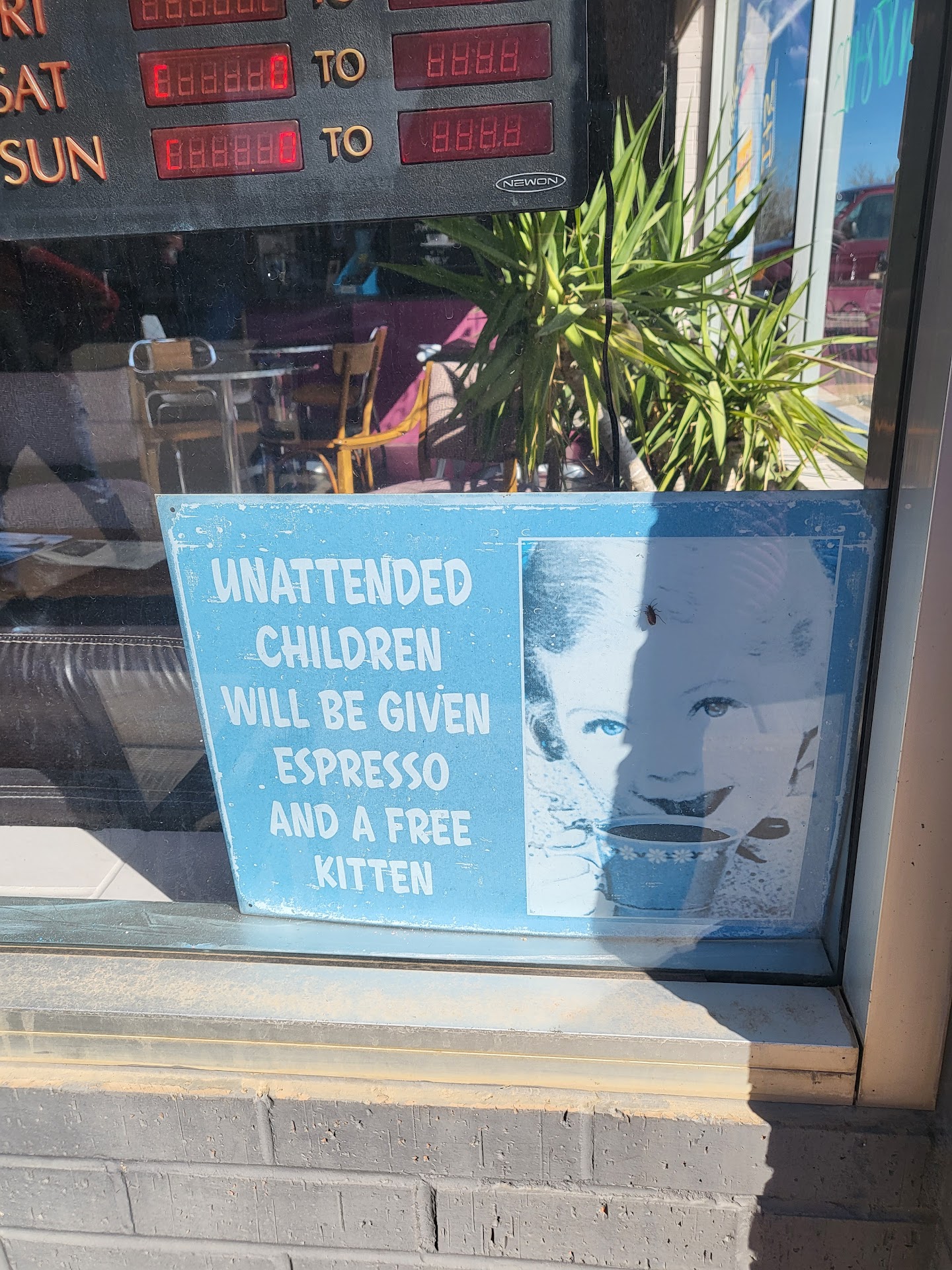 We stopped on Labor Day Monday at 10 AM-the only place open in town. The coffee shop was clean and cozy. Service was very fast and friendly. I had a Carmel roll which was very good along with a cup of black coffee which I felt tasted great. There was plenty of parking...
