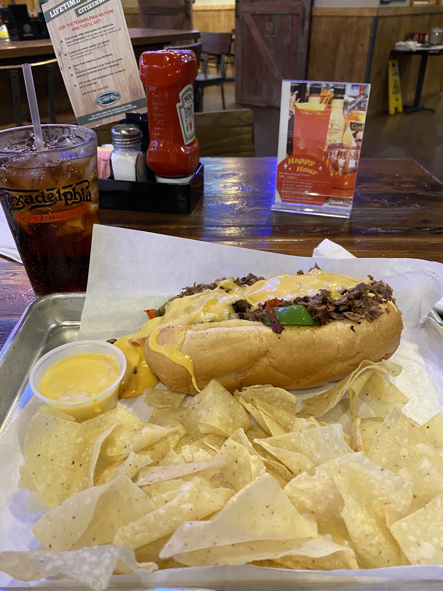 I’ve always liked the cheesesteaks from Texadelphia. It’s no different here. Consistency is the same. Chips that are served with the cheesesteaks are light and tasty. Get a side of queso to dip your chips.