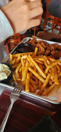 They have a large menu selection ... I got the Fish & Chips (substituted Onion Rings instead of FF). My wife got the Crab Cake dinner with a House Salad and Cole Slaw. Others in our party got a Crab Cake Sandwich, Cheeseburger Panini, Hot Roast Beef Sandwich and Chicken Fingers w/FF. My Fish & Chips was good. Maybe over cooked by a little, but tasted good, was hot and moist. Onion Rings were crispy and tasted good too. My wife like her Crab Cake dinner, she chose the house dressing (raspberry poppyseed vinaigrette) and she liked that!
