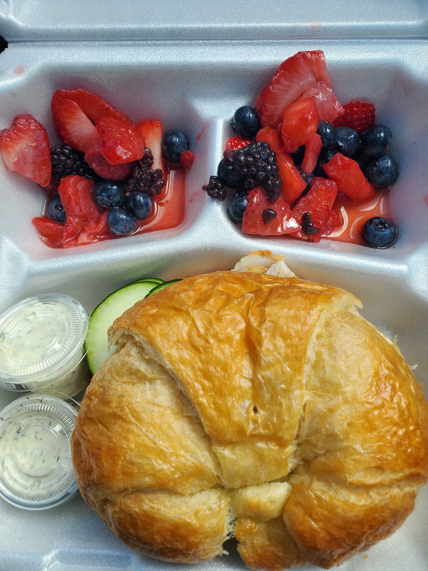 The food was just okay — bacon, eggs, toast — bacon not as crispy as I like, coffee $3 with no automatic refills, and my sugar got ruined when a water spill turned the bowl into a tiny swimming pool.