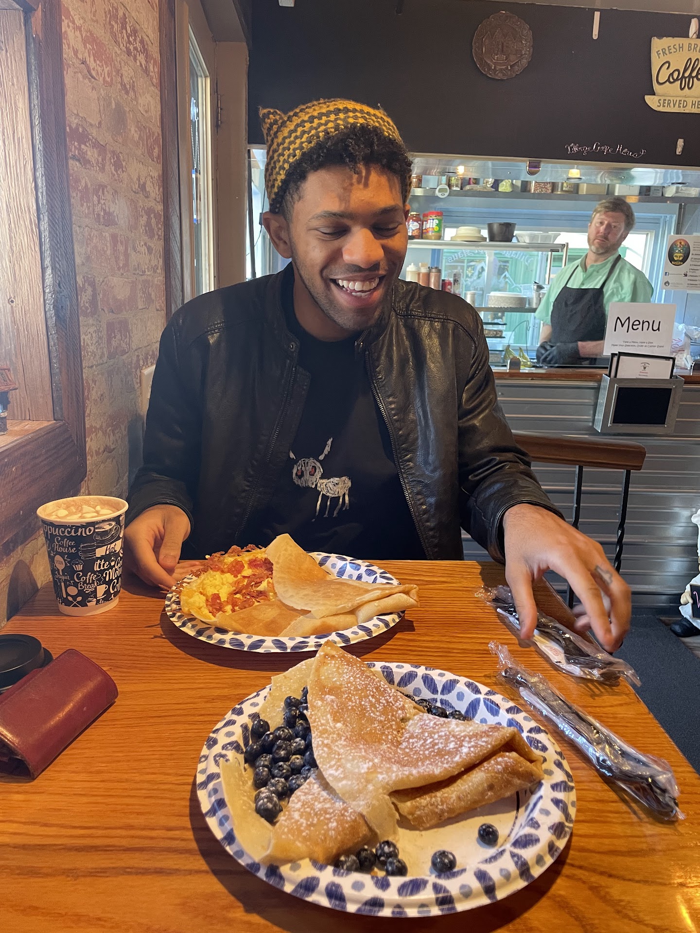 Read moreNorth Georgia local here. Been coming to Helen for many years and usually stick to certain restaurants in Helen as most are overpriced tourist traps and reviews don't usually reflect actual service due to all the tourists, so I try to offer my reviews in the area when I feel it might help others. I don't recommend this restaurant. Came here for my birthday with my girlfriend because our favorite restaurant Cimmi's is closed Tuesdays and Wednesdays, decided to try something new. We also both have worked in the service industry as servers for a few years in the past and try to give restaurants the benefit of the doubt for that reason. The menu was missing many items they had crossed out and some items that weren't available were also not crossed out and updated on their menu and we did not find out until walking up to the counter to order. Yes, there are no servers and no real personal service here, just a cashier. They were not very busy at all, but they brought out food for multiple other groups before ours. The restaurant atmosphere feels very cramped and definitely like the food is designed for more grab and go, which might be fine for some people. Hashbrowns were from frozen. They tried to make it right by giving us a free dessert, and while the key lime pie was quite good, it was in wrapping from being shipped in to their restaurant in boxes (not homemade). Crepes were OK, but nothing to write home about and my girlfriend's Elvis crepe didn't even have the correct ingredients as was listed on the menu. Meal for 2 people cost $40 here. You could get more food, better service, for $10 cheaper at Cimmi's or Huddle house or where else in Helen, a heafty tip for the service included. This place is just another overpriced tourist trap and we will not be...