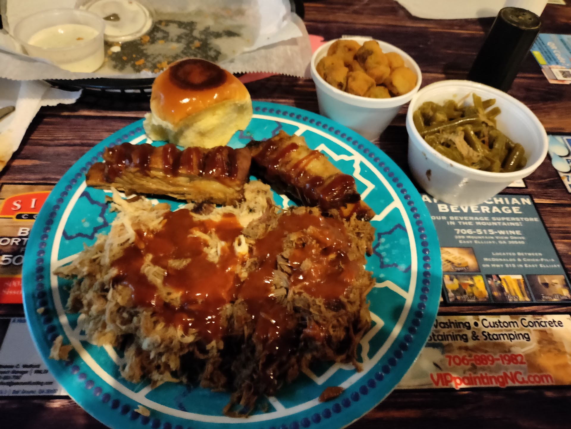 The vibe inside is super chill. Picnic tables, maybe some country tunes in the background, and the kind of friendly staff that treats you like a regular even if it’s your first time. It feels like a backyard cookout but better—because you don’t have to do the dishes.