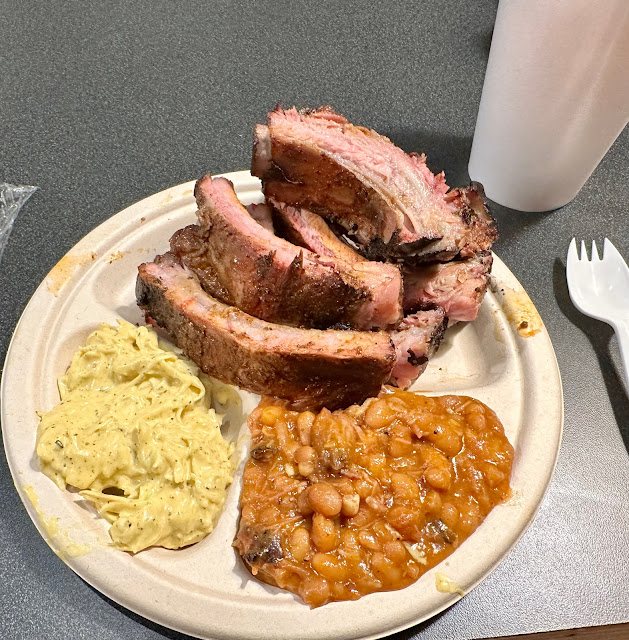 I had two meals here. For dinner I had the ribs and they were tender and nicely smoked. The beans and Arkanslaw were spot on. The next day for lunch the pulled pork sandwich Arkansas style was moist and smoky and no sauce was required. They also have brisket and chicken on the menu so maybe I’ll return either before or during the next King...
