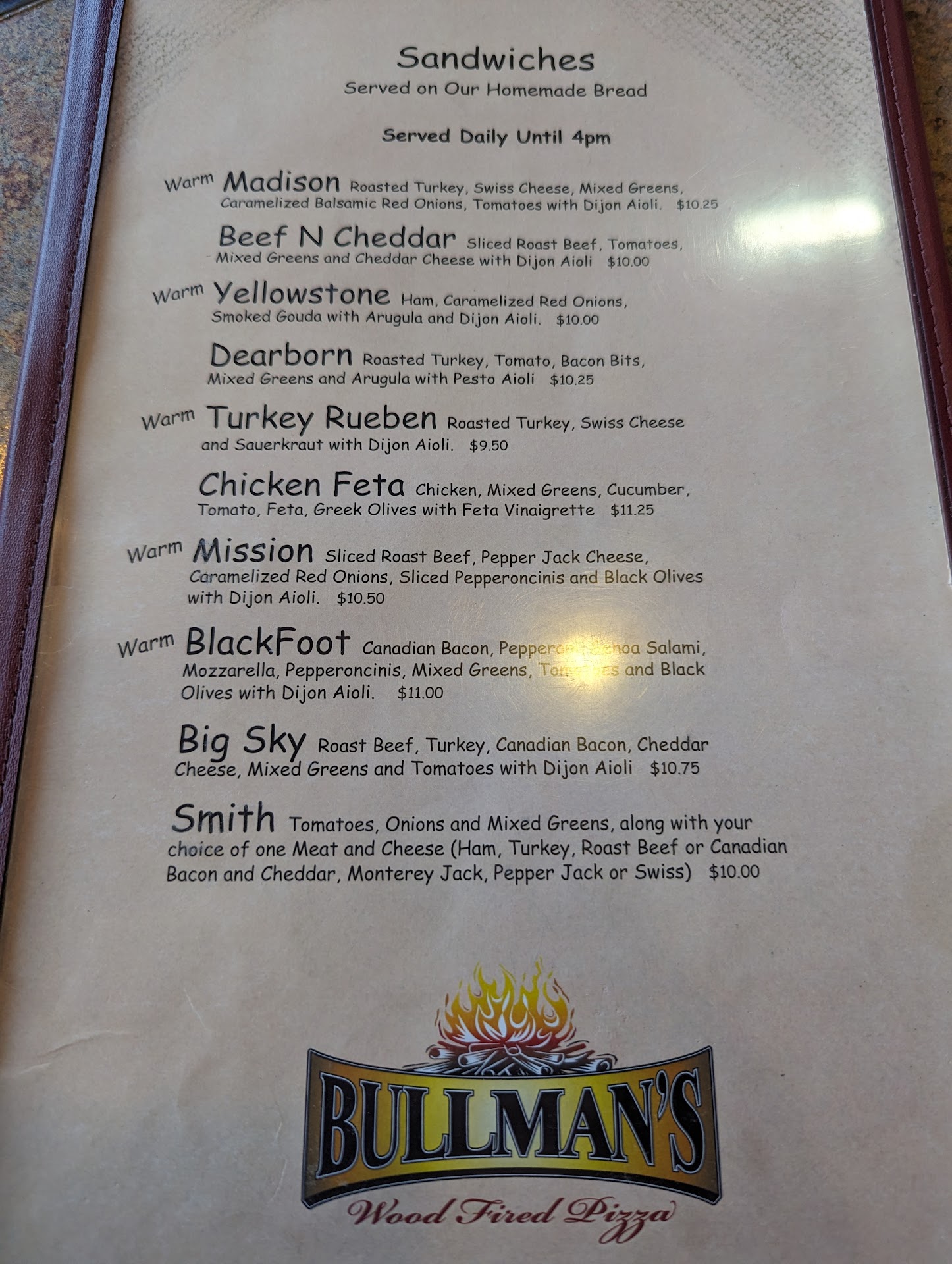 My wife and our three young daughters tried Bullmans pizza for the first time since we have lived in Montana. We heard good things about it, but we finally made it there last night.