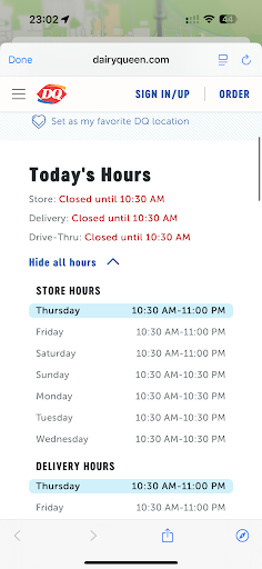 I went there earlier this evening and I ordered the $7 special that comes with the burger, fries, drink and a sundae. I paid the extra for a blizzard and when I got to the window, the young lady handed me the overflowing blizzard and the drink with no lid on either. I asked for lids for both of them and was told that they dont give lids unless it's for an order for door dash. Excuse me? Whaaat? I asked her why they would not give lids because with it being a drive thru, obviously you don't want ice cream or a drink spilled all over your car. I then told her I had been going to Dairy Queens for 50 years and this was the only one I had ever been to that refused that simple request and then asked to speak to the manager who told me the same thing. I handed everything back and told him to refund my money. He came back with lids. Imagine that. Got home and started eating my burger and fries and the burger was horrible. It was burnt and just did not taste like a DQ burger. There was obviously something wrong with the meat and I threw it away. This DQ used to be awesome but I'll never go back again. Before the automated response kicks in and tells you they're sorry for your bad experience and to go to such and such link like all the other responses to bad reviews, I suggest the owner go in and actually see why there's so...
