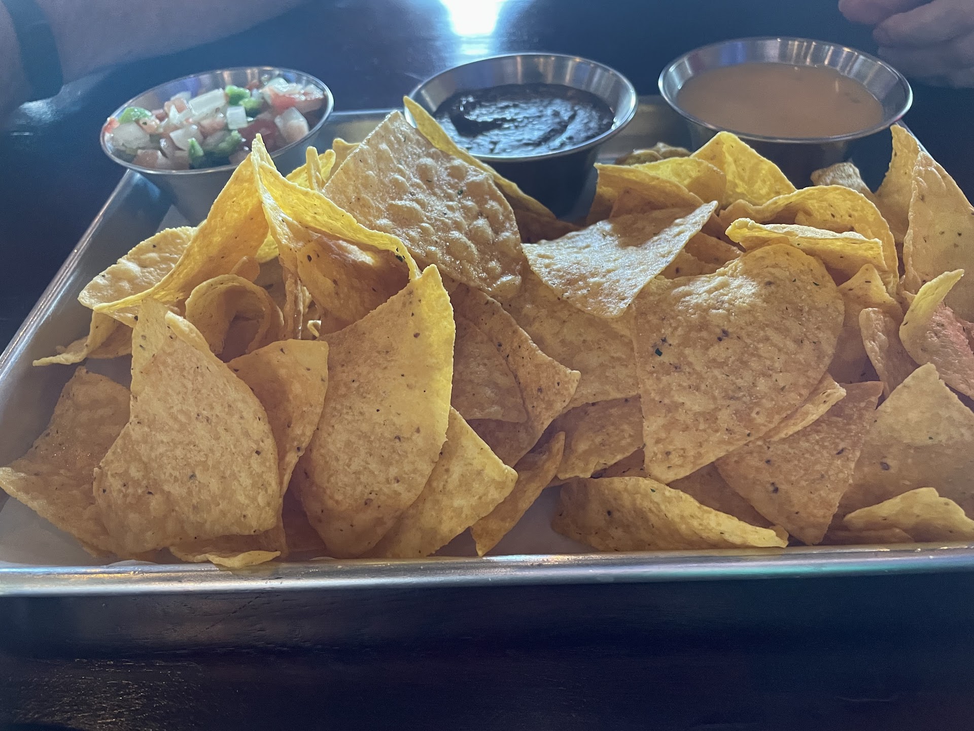We did not have a very good experience. We came and waited nearly an our for our food. We got the chips and dip, queso was good, bean dip didnât have much flavor. Just tasted like bland/smooshed black beans. The salsa was disappointing, it was just chopped tomatoes and onion. I got their famous âlemon chicken Sammieâ and some how the outside edges were completely burnt but the inside was still pink. The chicken was still raw. My friend had the buffalo chicken sandwich. My friend said it tasted like a literal tendon so he didnât finish even half of it. I wanted to try his since mine was bad and I kid you not the other half of his sandwich didnât have any chicken, thatâs how small the piece of chicken was on his sandwichđ. So the other half I went to try was literally...