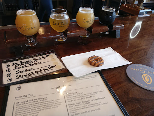 Well...we stopped tonight haven't been since before covid we ordered food then went inside for a table the waitress asked if we had a reservation we said no. Asked if we had been there before said yes, but should have said no, didn't understand the whole food ticket thing (must have food or food ordered to get a drink) while my husband waited outside for our food I couldnt get one person's attention and I was seated by the door!! We finally get our food 20 min later (food trucks a bit of a wait and the line is long) while I could hear the waitress complaining that people were coming in without reservation to random customers... I mean guys we haven't been out in a year and all of a sudden you need a reservation at lost tavern...?? How would people know? When they finally came over we were almost done with our food...so we finally got a beer, and I have to say again we were seated BY THE BAR. Waitress did comp. 1 drink so she was aware that we were ignored. But why??!! Not entirely sure if we will go back. Long..review make a reservation and expect...