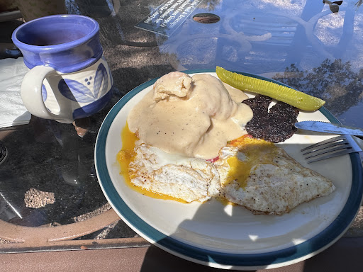 Read moreI’ve visited The Cracked Mug Coffee house a lot last year and I’m glad I started my 2025 visiting again . I got the usual breakfast plate ( they have the best scrambled eggs I don’t have to put ketchup on them ) , bacon , potatoes , and toast . I’ve tried their seasonal drinks but really loved their specialty drink Old Town Turtle with almond milk ( caramel + butter pecan + chocolate ) . My cashier was so kind , I believe she was new because she was asking questions and the baristas were helping her . I love drinking coffee outside especially when the weather is nice