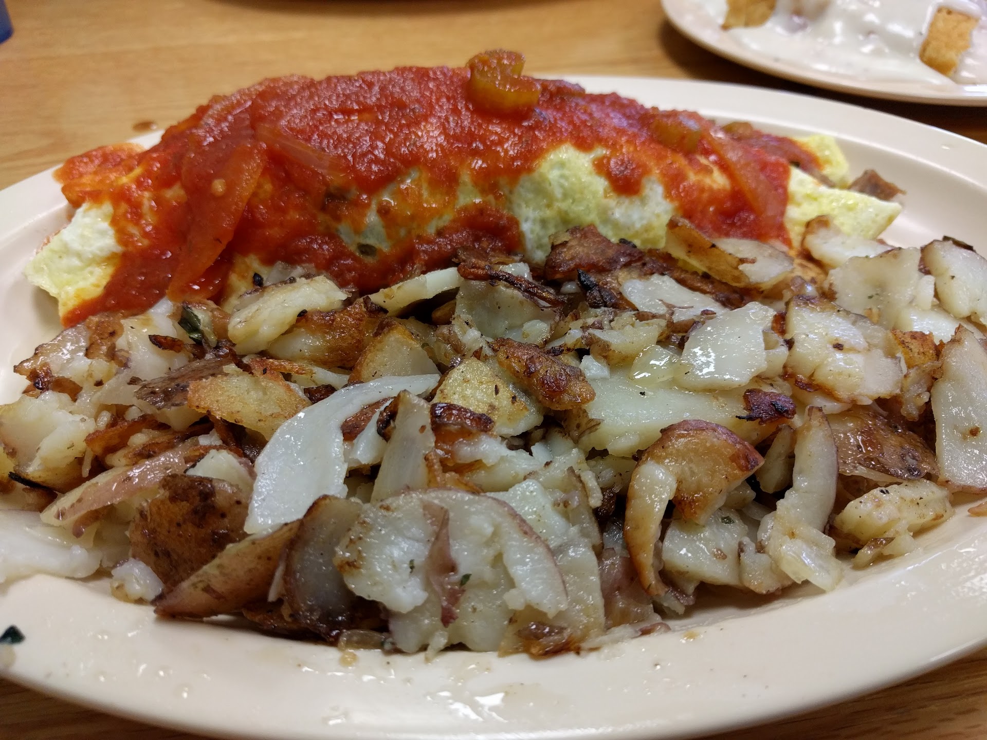 Read moreThis location does not meet our expectations. Our food was not entirely as ordered. Came at different steps, which made some of it too hot some too cold. The biscuits and gravy were not exactly biscuits and very little gravy. We had to order extra gravy for the hash browns. No toast was offered. And the option for a pancake was not chosen which was regretted later. The spinach omelette stayed extremely hot for some reason internally. The biscuits and gravy got really cold very quick and they came at a later time. A soup and sandwich was ordered which was not brought to the table with the rest of the order. It was not toasted as requested. And the sandwich size was very small. By the time they toasted the bread the soup was a bit cold. The meal was not going to be enough so fries were ordered. They came to the table at the end of the everyone's meal so they were not consumed with anything else except by themselves to finish up. They were very busy which makes for a lot of mistakes and a very long wait time for the food to arrive. We also noticed that the other waitress was unwilling to take our ticket and charges so we had to wait for our waitress to get to us so we could pay. Overall I don't think we are coming back to this location. It is small, cramp, and last time it was very dirty. Today the floor was clean. My ticket for 2 was $25. I had water, soup and half a sandwich some fries the other was an omelette breakfast. The only thing that keeps us coming back is there excellent Ice-Tea. We will only now go to the San Jacinto location (near SJCC) service is so much better there. Waitresses regardless are friendly...