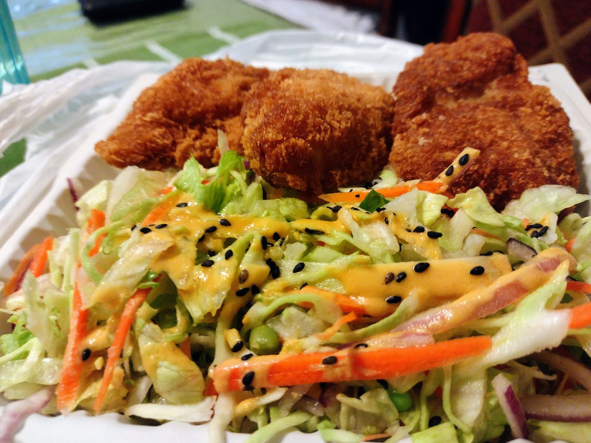 Right off the bat! Food is amazing, my must-try favorites is the Katsu Chicken as well as the Island Fire Chicken, Macaroni Salad is the staple side there and must be respected (even for someone that doesn't like tuna, I love the macaroni salad). Pricing may seem a bit steep however this is quickly counteracted with the large portions of meat that are given, additionally everything is cooked properly there is no surprise that the cooks have experience and know what they are doing.