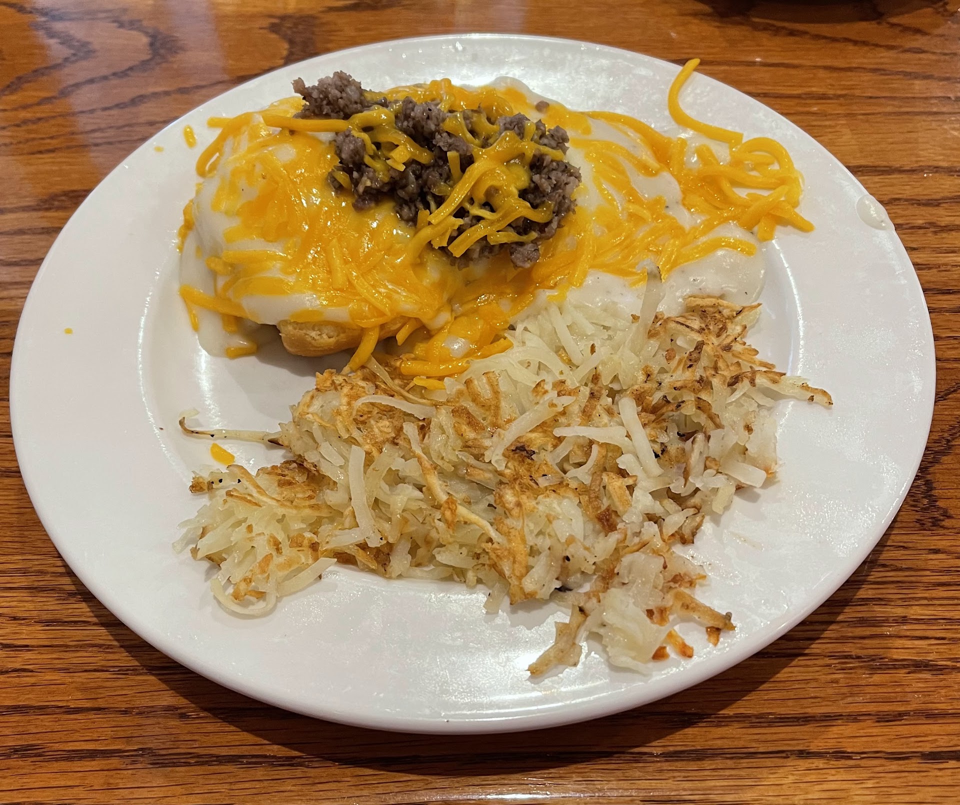 Read moreLast time I’ll go here. The server was the only positive thing about the entire visit. (Her name began with an R.) It was odd for a Saturday afternoon, there was no music on in the restaurant, and the host looked like he just crawled out of bed. Literally. We were seated, and ordered. Went to the restroom and seen a male employee use the restroom and leave without washing his hands. He worked in the kitchen. 😳 Should have left then. We each ordered potato soup and an A1 burger with fries. Pretty easy. The potato soup was literally frozen potato bits thawed with watered down cheese sauce on them. That’s it. Yellow thick goo covered potatoes. No other color or ingredient present. Ok, 2nd time we should have left. Now it’s pure curiosity. The burgers came. Said a1 sauce and Carmelized onions. 🤣 there was no sign of A1 at all, onions were raw onions tossed on a dirty grill to get some color, I don’t think the burger was real meat, and about the size of a McDonald’s patty. It wasn’t even warm enough to melt the cheese. If it was real. Then overheard the server say she was the only server working all day. If I was her I’d of packed up my notepad and left! I left her a 50% tip because she did nothing wrong but this location needs to just close up. Gross. Cafeteria at Sams club is...