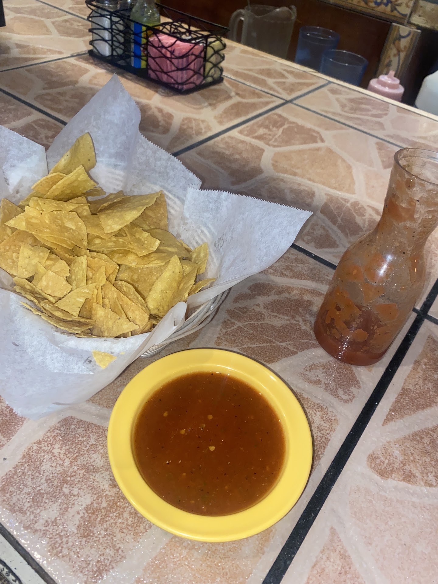 Read moreThis was our first time here. My first impression was when I went to the bathroom and saw how dirty the light switch cover was. I immediately hoped that the kitchen was kept cleaner. Our meals took almost 30 mins to get to the table. The food was very good and in large portions. I got the chicken fajitas and my boyfriend got the chimichangas he said his food was very good also. The place was almost full at that time so the wait was somewhat understandable. They do give you chips and salsa which made the long wait more acceptable. My over all opinion is that this place needs to be cleaned. Our booth had splatters on the fabric of the seats and there was ample splatters and food marks on the wall. There are some cosmetic items that need attention like the chunk of the stone bar that is missing, the light fixture ceiling plate had fallen down the chain and the paint job on the front windows is a mess and mostly worn off. (Fast Times Sign and Screen printing could do a nice vinyl wrap on the windows that would be much more durable.) The food is very good and the atmosphere was nice had it been cleaner I would have given it more stars. I hope the next time I come there that light...