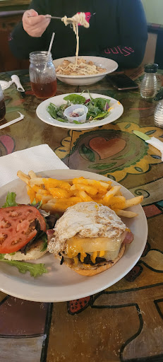 Read moreWe went here July 29th . We had a little bit of a hard time figuring out where the place was . Also there is no sign up on the building . In the back of the building it looks like some garage or warehouse . We entered and was greeted by the hostess and seated . Anyhoo , inside is some very creative decorating . I was impressed . She uses recycled items as decoration . The chandeliers were made of teacups and saucers . It's amazing ! Our service was fast and friendly and food delicious . We ordered the cheese wheels and potato skins as appetizers . I recommend the cheese wheels . I had the Golden Cow roast beef sandwich ( YUMMY ) . They had at least five different specials listed on the board . The desserts are not on the menu . You have to ask . Many different cobblers to choose from . We skipped dessert . They do not serve alcohol . Prices are good . 10.00 -15.00 range ... dinners etc I asked how long they have been in business and the waitress said since 2014 . I then asked about the sign . She said they had one and were soon going to put it up . I was just puzzled , being in business for three years and no sign . That's the only reason I gave it 4 stars , is not having a sign . Try it , it's a great...