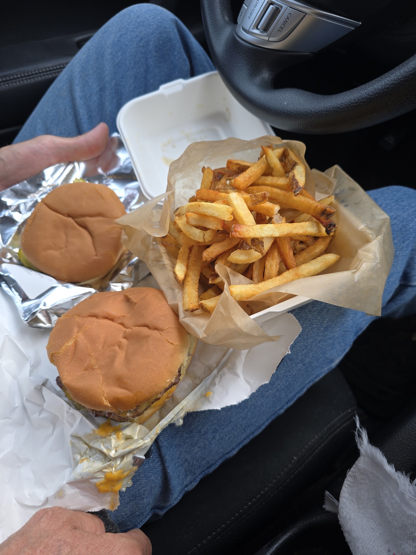 Today was our first time there and we will definitely be back! The service was spot on. There was a new girl working and she had a helper showing her the ropes. She wasn't quite sure how to use our coupons and kept apologizing, telling us that she was new. She was super sweet and got everything right! The wait time to get our food was also very fast! I got the single cheeseburger and my husband got the triple and they were both delicious! And ooooh ooooh oooooooh the fries were soooooo good!!!! The regular size was perfect for us to share. I forgot to order them "well done" but I didn't have to, because they came out nice and golden and crispy. Just the way I like them! I also got the Avalanche cone and it was very good too. The only thing that I would recommend is either, chopping up the chocolate chips, or using mini because by the time you got them chewed, the ice cream was melting. But no worries, I survived and just ate faster!!! I'm not sure what was up with the tall tables and no chairs. I think they would benefit if they had high stools for the tables or lowered them and had regular seating. People like to sit and eat, even if it's for a short time. We ate in the car, which was fine with me, because it was really hot out. Keep up the good work...