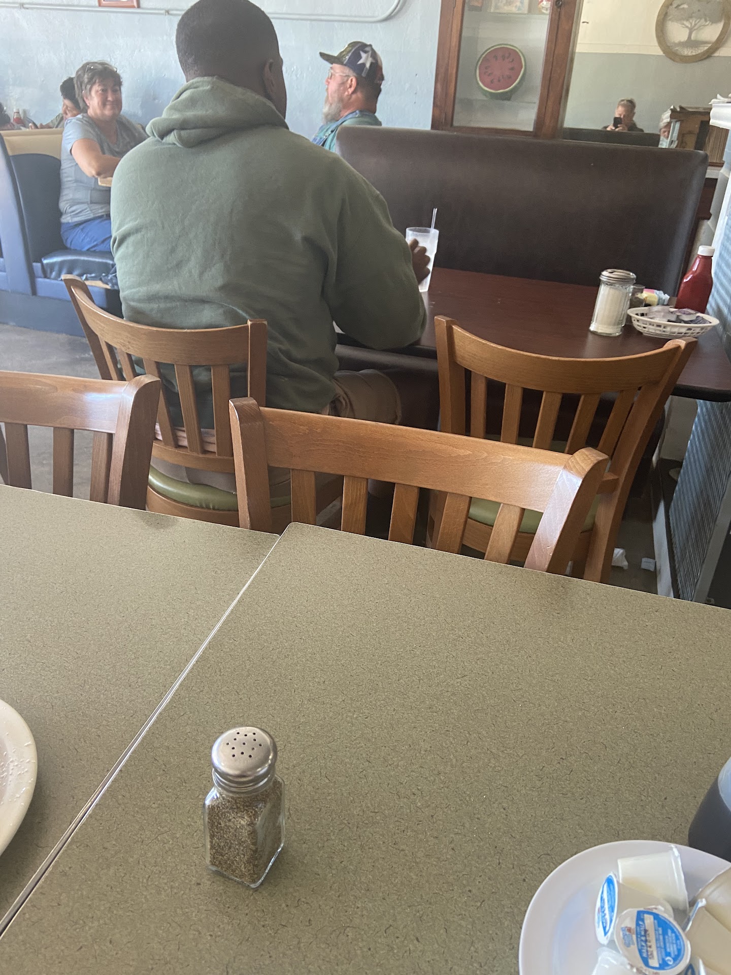 Read moreWe stopped here on our way through town and weren’t impressed. We were greeted by a staff member from behind the counter when we walked in and we found a table for ourselves. We sat for roughly 5 minutes before someone came to our table. The waitress gave us our menus and walked off. Several more minutes went by before someone else returned to get our drink order. It was not busy and should not have taken so long. We got our drinks and placed our order. The wait time for the food was decent and the food was good and cooked right. However, the plate my husbands pancakes came on was dirty. It appeared to be a dirty dish that they had dumped the leftover food off of and put the pancakes on it. The waitress took it back and brought out a clean plate with fresh pancakes. Their was also some kind of bug in my water, but at this point I didn't even mention it to the staff and just shared my husbands water. They did come by several times asking if we needed coffee refills. When it was time for our check, they never brought it to us so my husband just walked to the register to pay. If we are ever around this area again we won’t be revisiting...