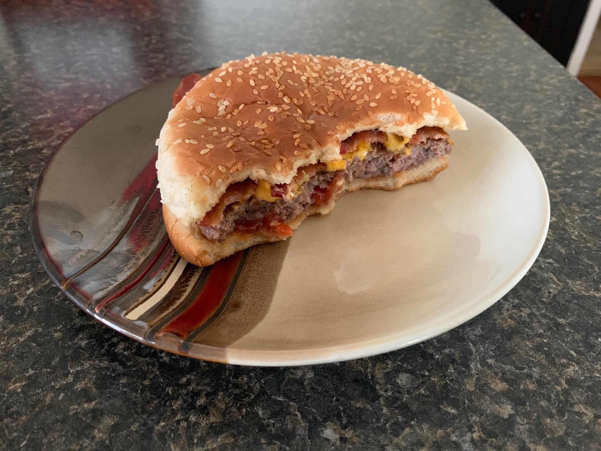 The Bacon I added to my burger was thick cut and they included enough to fully cover the large burger. The cheese was fully melted. The burger itself has a good skillet burger flavor. No smoke or char-grilled flavor, but that's just a preference of mine. The sesame seed bun was soft and fresh as well.
