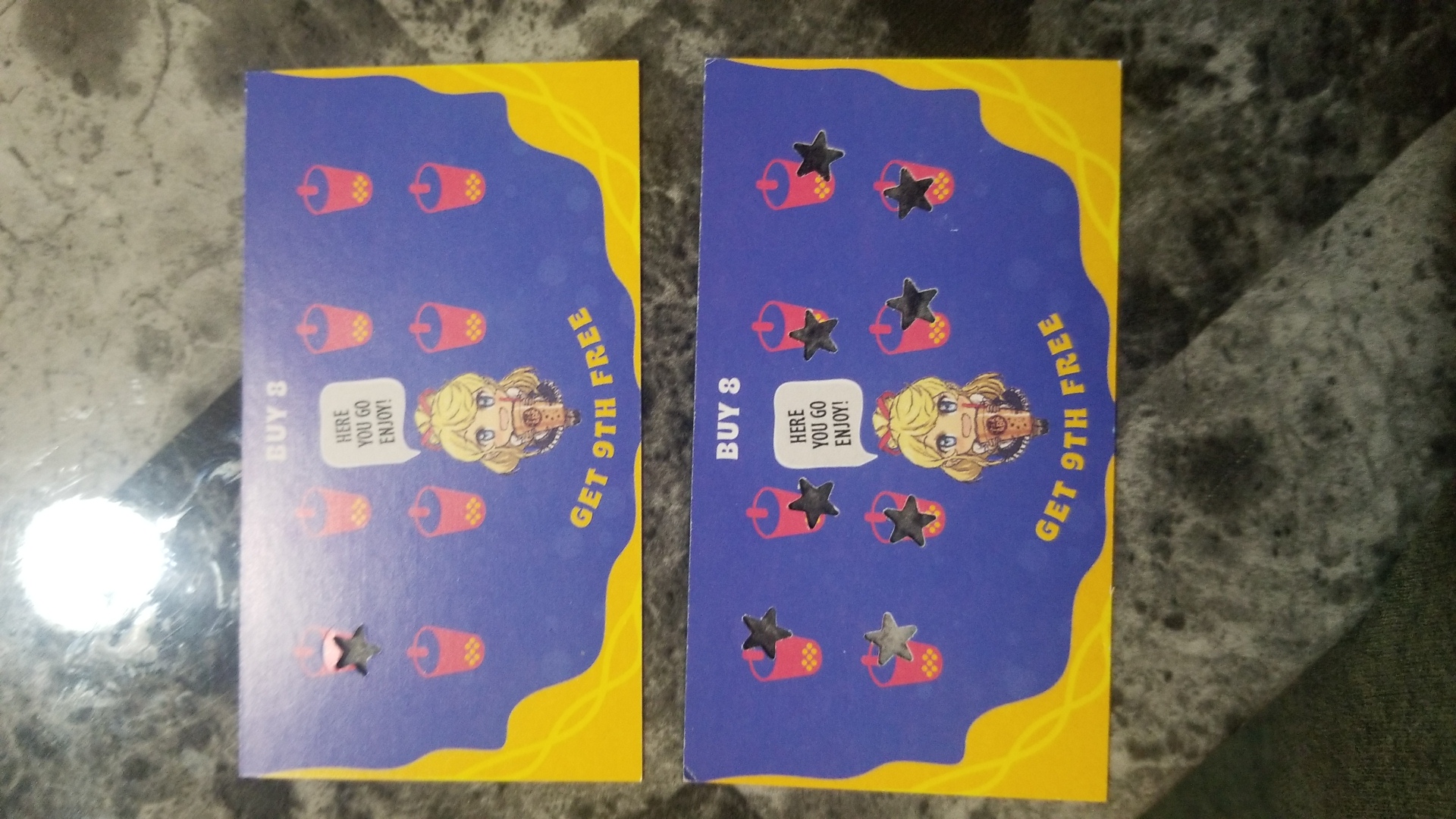 Read moreI've never had an issue with this place until today. It seems this place doesn't honor their own stamp system and sadly I was scammed. I came with a stamp card fully stamped and was ready to redeem my free boba and purchase another. When I gave the young lady my stamp card and my debit card she charged me in full for both drinks. She handed me back my debit card, my full stamp card, and another stamp card with one stamp, not even acknowledging the free boba. Her excuse was that my full card wasn't full and that she filled it with the last one and added the next star onto the next card. I proceeded to ask then why I was charged fully... she seemed to be extremely confused. I explained that even if my card wasn't full, ordering the two drinks, one should've been free since I was "missing one" stamp. Another young lady just comes up to the window and tells me my card wasn't full they put the stars on a new card and free bobas are only redeemed on my next visit, so I cannot redeem my free boba until I come again. But this was my next visit, my card was already full? There's absolutely nothing clarifying on the card that it's only to be redeemed on the next visit and cannot be combined with another purchase? I was told the previous visit my next boba would be free and now I'm being told it's not redeemable until my next visit, again? It just sounds like a scam, there's nothing free to be redeemed. Don't trust their stamp system cause the teenagers they have working don't even understand how it works either. They make up the rules as they go. Extremely unprofessional. I couldn't care less about a free boba but now it just seems like I'm going through an endless cycle of "redeem on your next visit" and I'm not for it. Not that my money matters but they lost me...