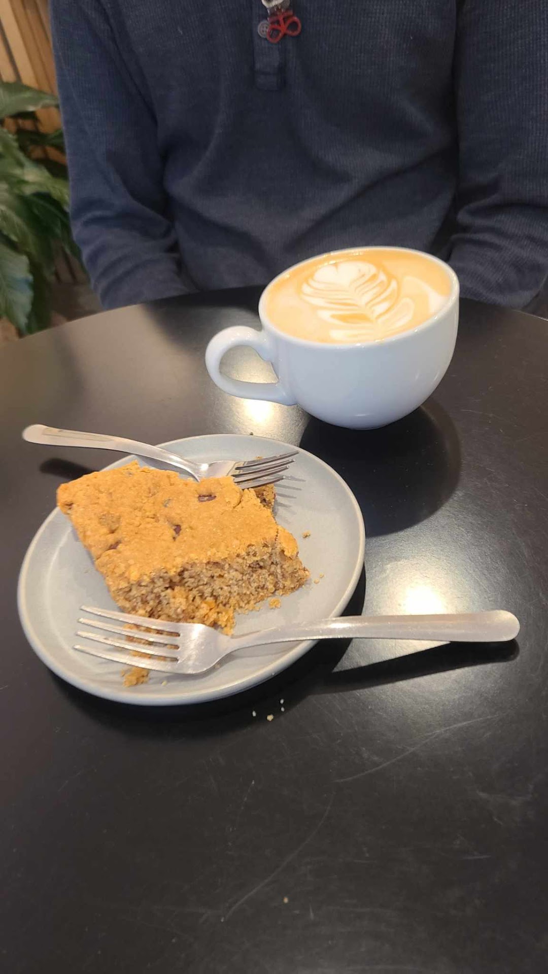 I chose the sailor flavor syrup option. Involved maple and rum flavors. I was extremely impressed with the machine choice. It was gorgeous and really adds to the experience. The shot pulled tastes balanced. I always intentionally get milk drinks to go for one reason: to see if they take time to latte art even if it were to be covered by the lid. They didn't, but that's to be expected. As I don't if I know I'm leaving the house. The oat milk was very well steamed and really adds to the drink. I will be visiting again next time...