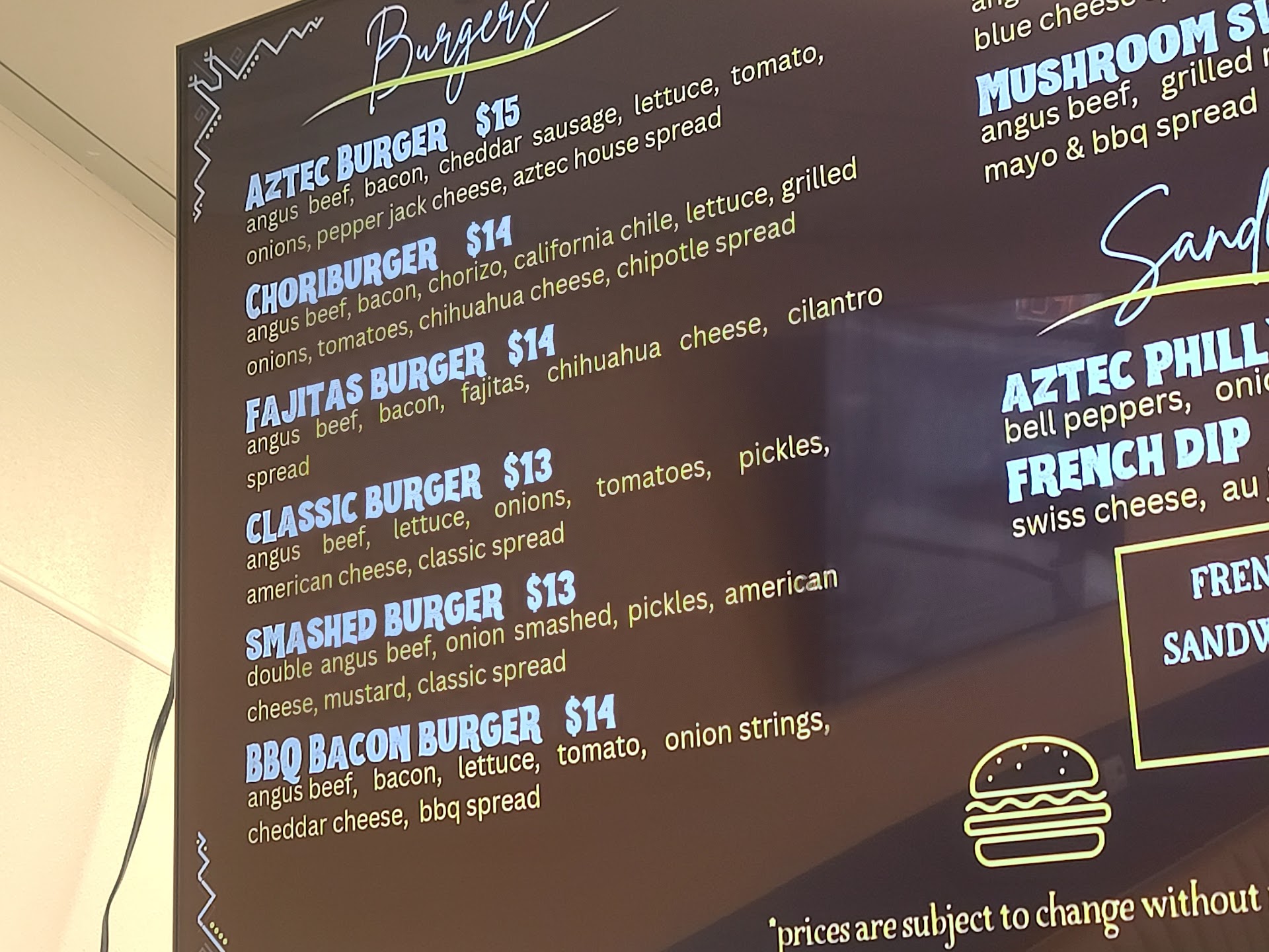 Read moreAztec Burgers offers a truly unique and flavorful experience in this neighborhood. It is a spot you don’t want to miss. The menu features a fusion of traditional and “Mexican Aztec” flavors. I tried the signature Aztec Burger and sweet potatoes with chili, and they were both delicious.
