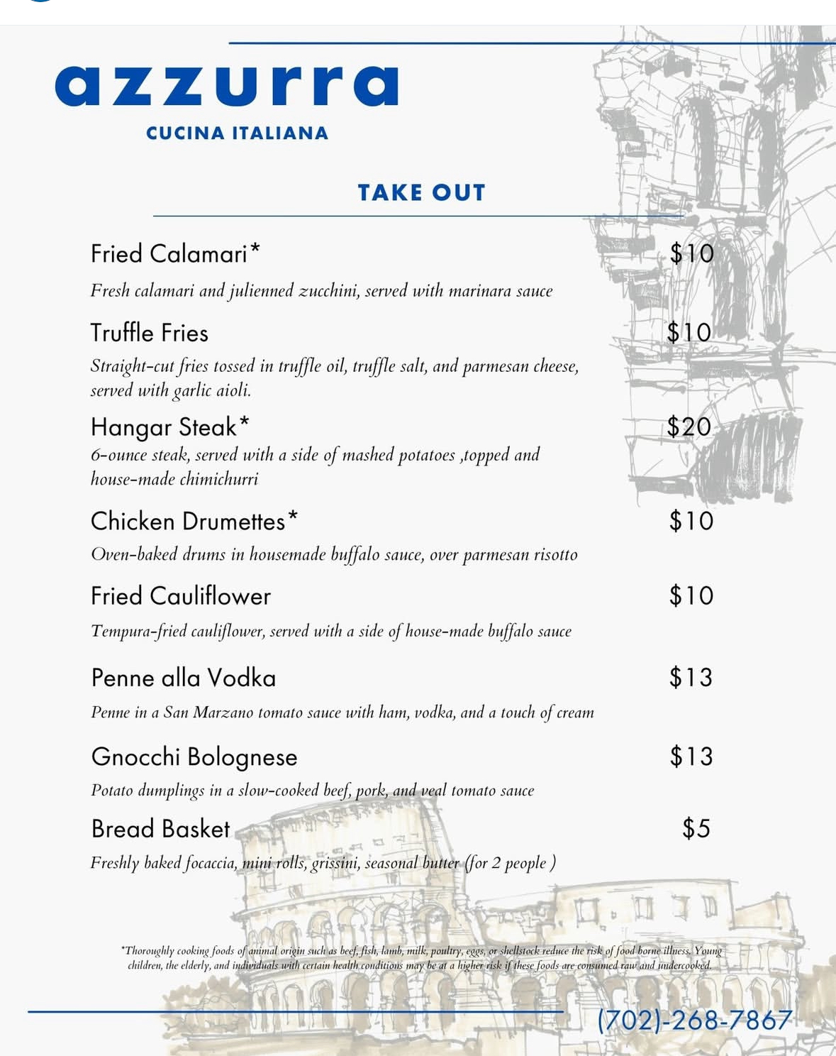 My husband and I regularly come to the Azzura restaurant for our date nights. We were excited when they posted earlier this week about their new takeout menu. When we called the phone number on the photo, we were told that the menu was only available for Azzura wine bar and not the restaurant. We would need to call the wine bar to place the order for takeout. We tried to call the wine bar twice and no one answered even though the hours say that they are open. When we tried the third time, someone finally picked up and told us that we would need to call the restaurant for takeout. Pretty frustrating getting the run around when we had plans for Azzura takeout. This is the second time we have been let down by their wine bar. The other time we went back in December, we were told that they open at 1 pm on Saturday’s and when we got there at 1 pm, we were told that no wine would be served until 3 pm. Very conflicting information, so...