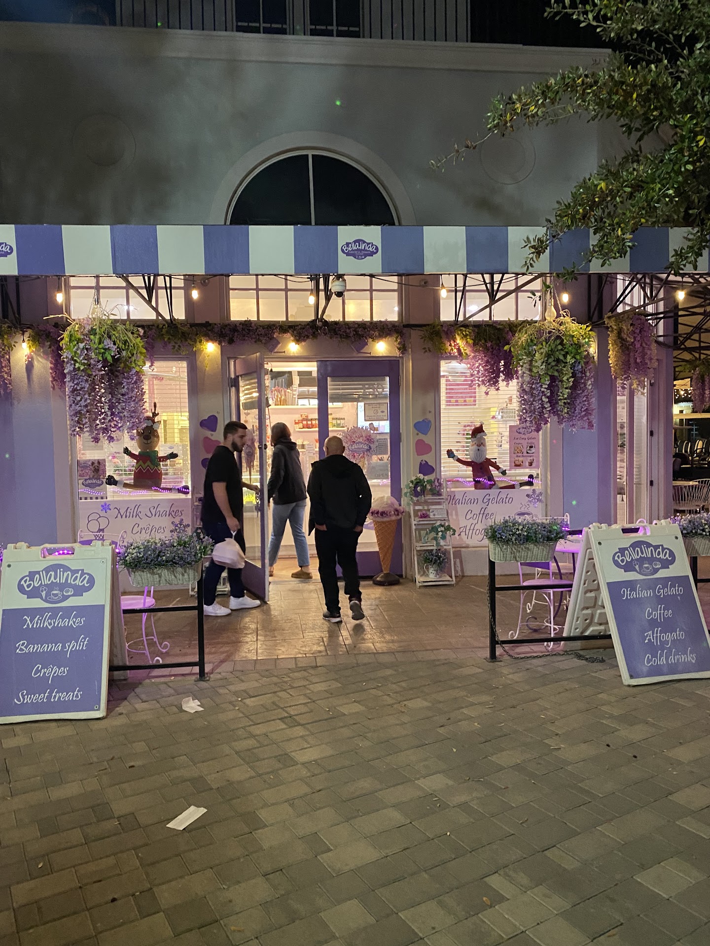 Stopped by and We had the crepe with nutella and banana it was pretty good! Also had a iced vanilla late which did not taste like vanilla. Was made from packaged coffee packs(i feel for the money they charged it should have been made from coffee grounded in house and at least in a grande cup if compared to Starbucks portions. Both the iced coffee and float was in a tall cup if compared to Starbucks portions as reference. ) and also had a root beer float. Float was good but portion was very small for the price they asked for. Also had an oreo covered in some pink chocolate and melted as soon as we left wonβt recommend since it will be a very messy deal. Would not come back here. Place is well decorated but i feel that thats just the only good thing it has going for it for all the instagram and tiktokers to take pictures in. Friendly staff. All in all we had 2 small drinks, a crepe, and an oreo treat and out the door it was close to $40 dollars. I get that its in a tourist location but still dont feel its worth spending the money there for a treat. I like getting decent value for my buck snd not get taken...