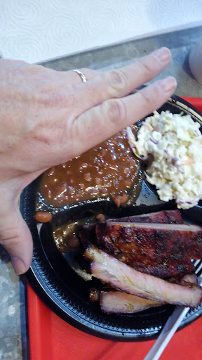 Everyone is polite a barbecue joint that don't have pulled pork all's they have is beef and they also have sausage etc but no pork!?! ...The potato salad is very good! .. the baked beans are way to spicey hot They must put cayenne pepper in them there's no flavor whatsoever it's just hot and beans... I asked the young man if I could have a container to put some pickles or relish in and he said there's ziploc bags on the counter if I wanted a Ziploc bag I wouldn't have asked for a container!.... And I just don't like wasting my breath on people so I went without what I wanted as I drive truck a baggie full of relish or pickles does not work. The price was high and the sandwich was fairly tasteful but no more than the 3 rating a sandwich small order of potato salad small order of hot beans and a bottle of coke 19 bucks! So if you take your wife and two kids you're looking at almost a $80 lunch by the time your said and done!.... Did bodacious BBQ in Kilgore on20 is much better!!!!!!!!... And not just for the reason they have pork they have baked beans that are...
