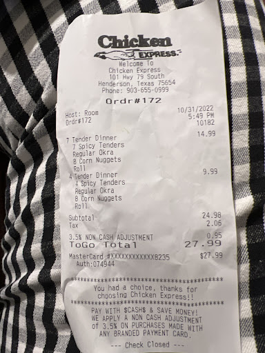 Read moreOn Friday, Nov 4th at approx 5:30pm , we had the RUDEST Girl at the DRIVE THRU window that I have EVER DEALT WITH at your establishment! I encourage management to teach employees about the IMPORTANCE OF CUSTOMER SERVICE!!!! I make a chicken purchase of $60.61 & ask to add 1 SWEET TEA ON to that purchase because I had forgotten it and I was told by the girl at the window “I CAN’T DO THAT, we have a line!”! I could understand if there were 5, 6, 7 cars behind me. HOWEVER, there were 2 cars waiting behind us and none waiting to order or waiting anywhere else! (Circled the building to find out!) I also will NOT be returning to a place of business who values a customer so little!!!!! By the way……we purchase a 25 or 30 tender pack + extras at least once a week for approx $55 - 60! I know I’m only 1 person, but maybe your mgmt can retrain this offensive, LAZY Drive thru attendant before she runs off more off your customers!!!!!!! Kelly Anderson...