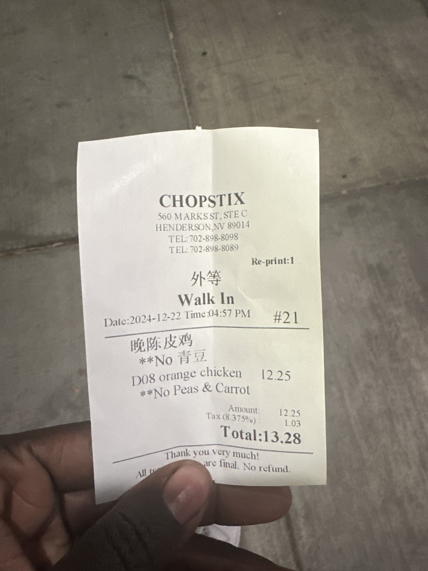 One more thing. When any restaurant on the bottom of the receipt has to actually put on the receipt all transactions are final. No refund. That should be a big red flag.