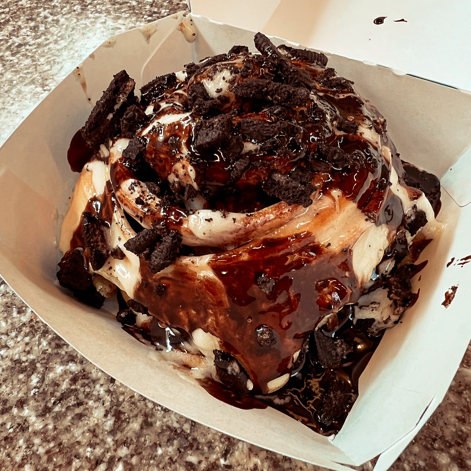 For this order, I'd used their app for the first time and upon arrival at the scheduled time, we immediately realized there had been a mishap on the app. As in, they were closed! My heart sank. I don't get myself a Cinnabon very often anymore, mainly due to the expense and not having a location nearby, so this had been planned out and even included a Mother's Day present for my Mom. I didn't want to believe that they weren't open. Maybe I was mistaken? Yet, the lights were all off, the display cases were bare and that beautiful cinnamon aroma was not wafting through the air. Sigh. I was frustrated and put off, to say the least.