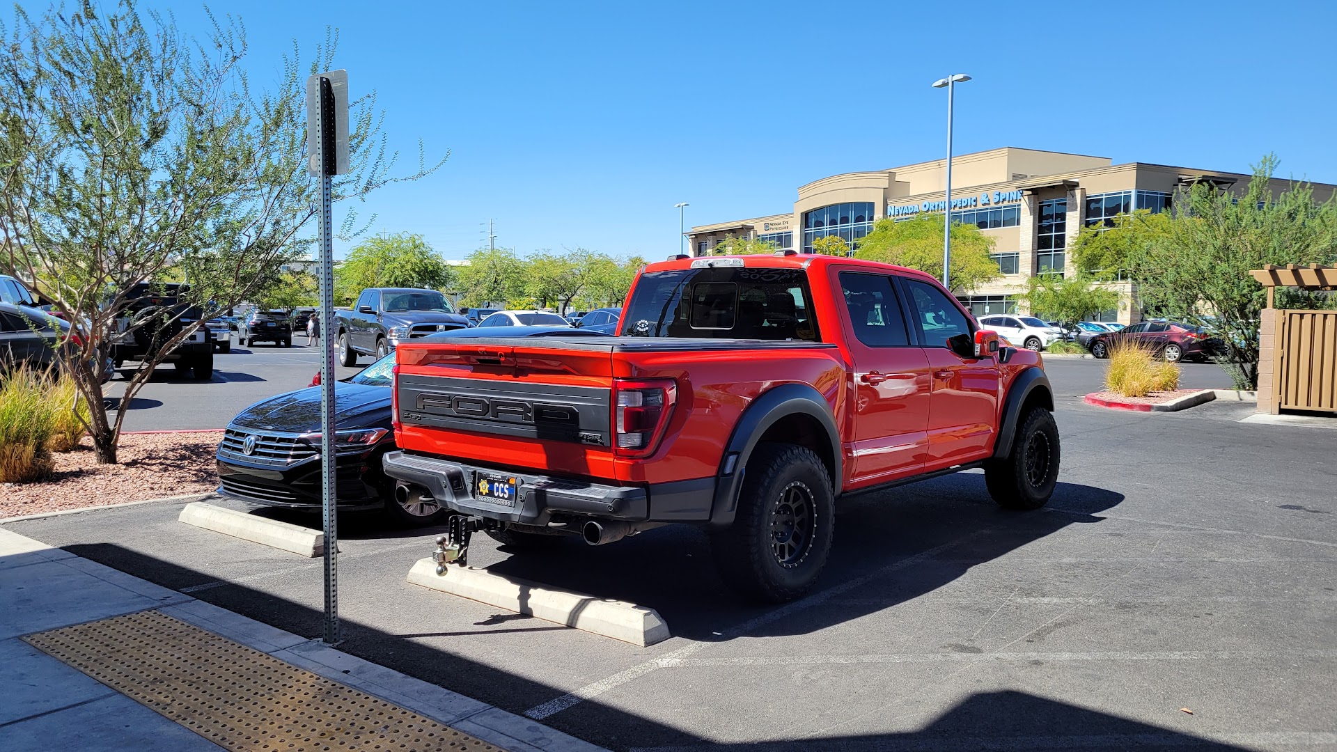 As I sat there eating, I see an orange Ford Raptor back into the handicapped spot. There are only two handicapped spots in front of Crumbl, Jersey Mike's, and Chato's Tacos. As someone with a family member that needs these spots, I always look to see if they're available.