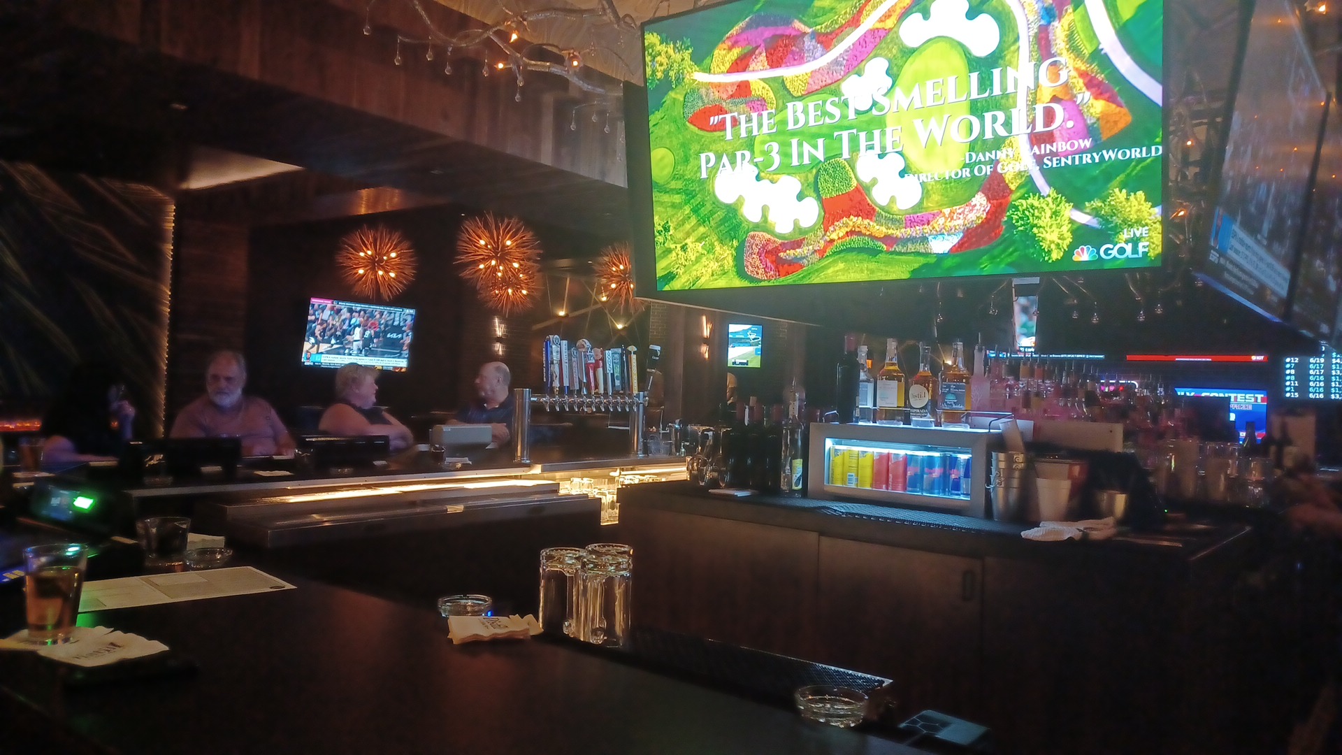 The diverse menu offers other items that you might not find at similar establishments but rather in restaurants. Some of these dishes include appetizers like, Maryland Jumbo Lump Crab Cakes, Ahi Poke Stack, Stuffed Sourdough Cracked Bread with Fresh Spinach Cheese Dip and entrees such as, Blackened Cowboy Ribeye, Sesame Crusted Atlantic Salmon and Beer Battered Fish & Chips. And for you burger lovers there’s a vast selection from the classics to a build your own burger. There are also several soups and salads available.