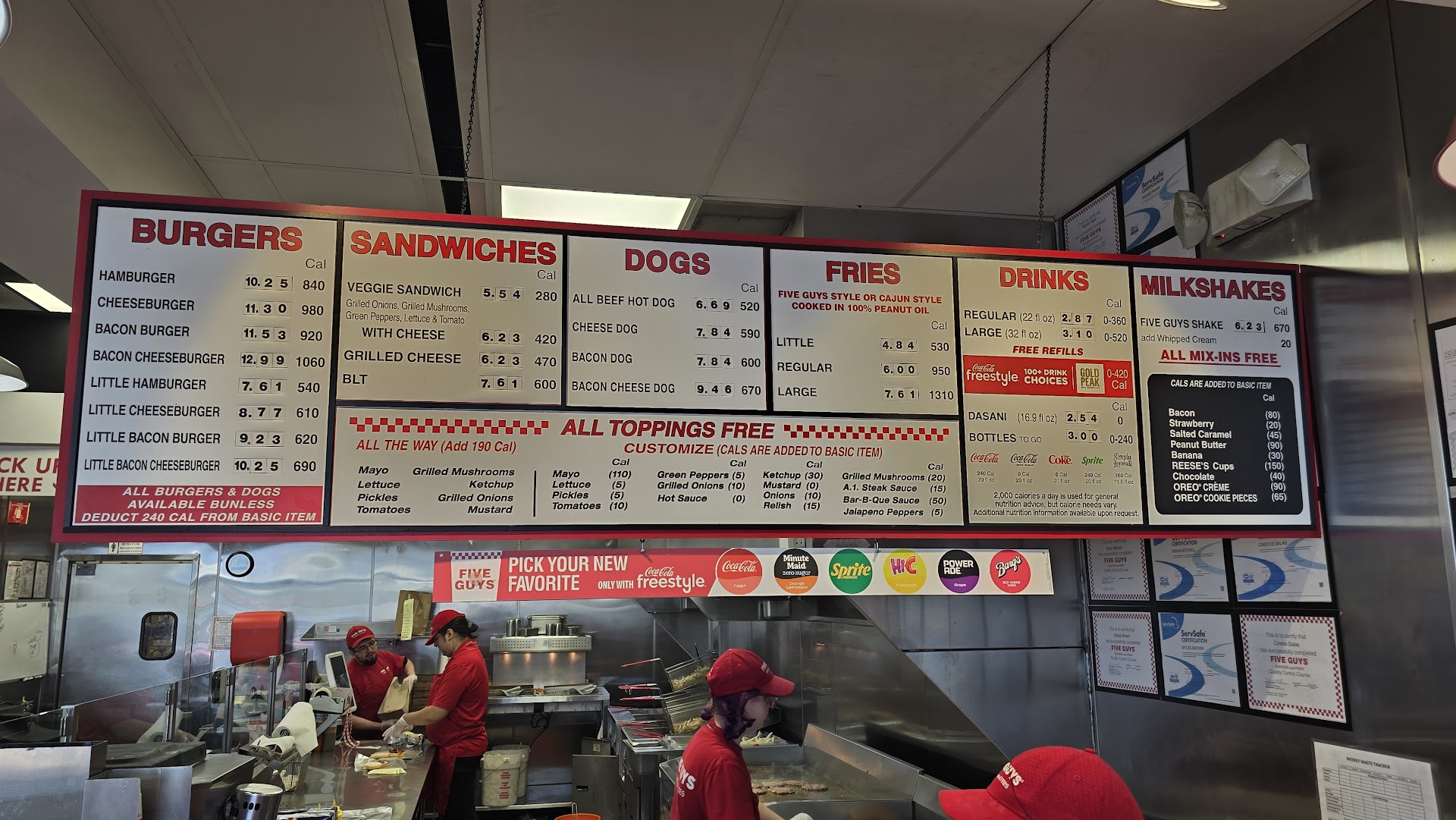 Ā Ā Ā Read moreStop in for lunch today at this Five Guys restaurant in Henderson, Nevada, just off Sunset. Standard Five Guys restaurant you might find almost anywhere, but it was still a convenient location just across the street from the Gallery Mall and next store to Sunset Station Casino. The parking lot out front can be quite hectic at times since it is not very large in the first place and there are numerous other eating facilities in the same complex, making this place a challenge, especially around lunchtime. The restaurant inside was very organized and clean and was well staffed by very friendly and polite employees, kudos to all of them. Since it has been a while between visits, we were a little surprised or sticker shocked by the food prices. Everything on the menu is ala carte, so there are no combo meals here (our meal for two came to $36.00 for a hamburger, cheeseburger, small fries and a large soda). However, after receiving our meal, we learned that the standard burger is two patties instead of just one and the small friesā portion easily satisfied both are appetites. So, if you want a smaller meal just order the little hamburger size instead. As for the food itself, excellent favor, and worth the price. Overall, quite pleased with our visit once we got over the cost of the food and we will be back again, just with more money...