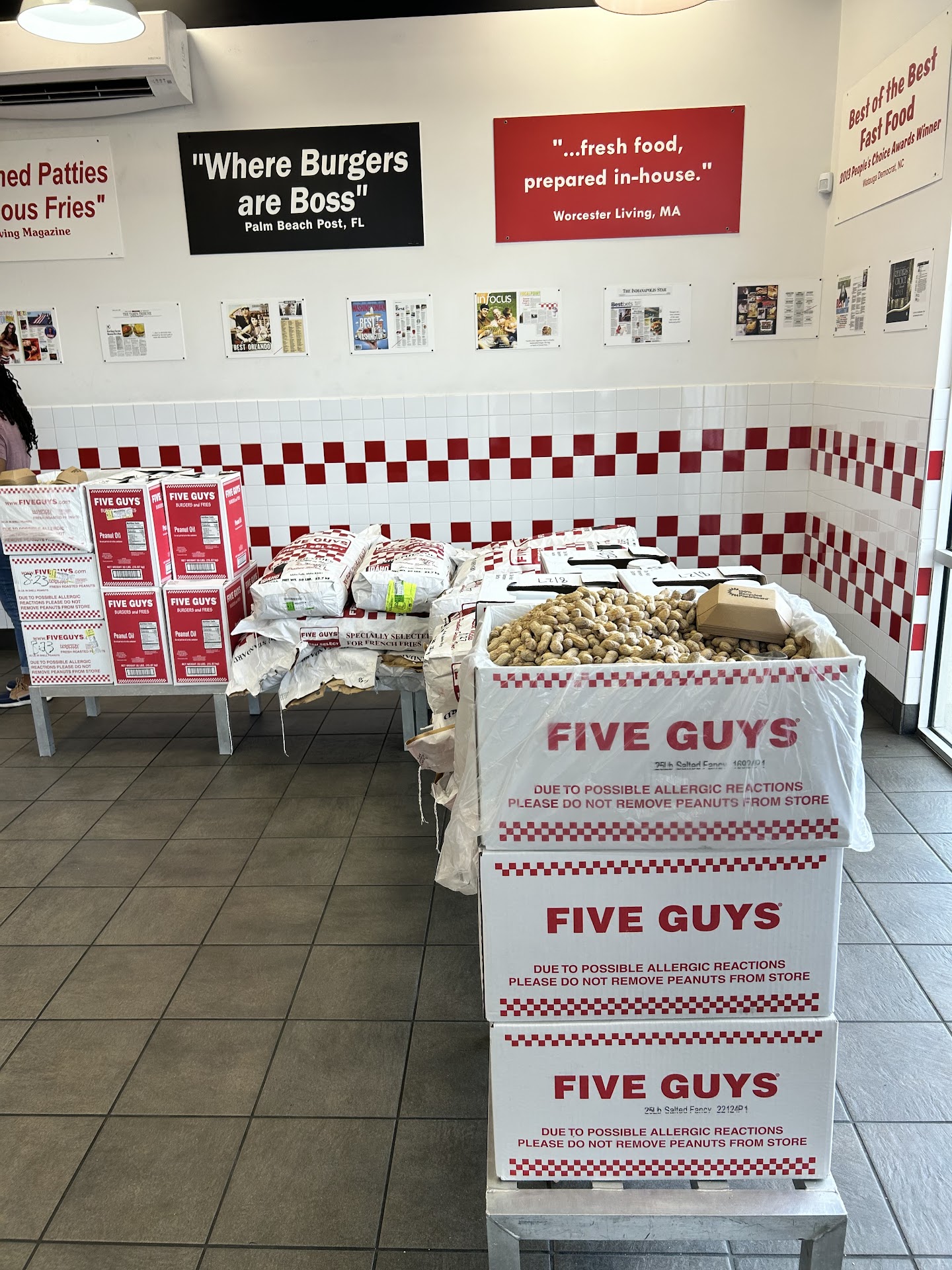 If you have peanut allergies this is not a safe place. Fresh peanuts are offered while you wait.
