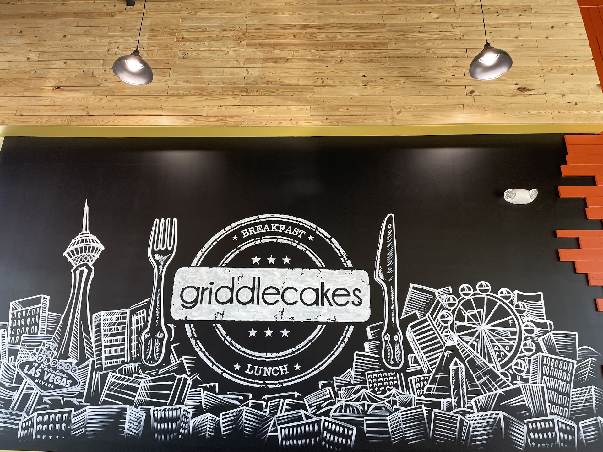 Two friends and I visited Griddlecakes at the Inspirada location last week. It's in the neighborhood so we thought we'd try it. It's a cute place with an incredible view. We could see the mountains, the Strip, and the Sphere. It also has a parking lot.
