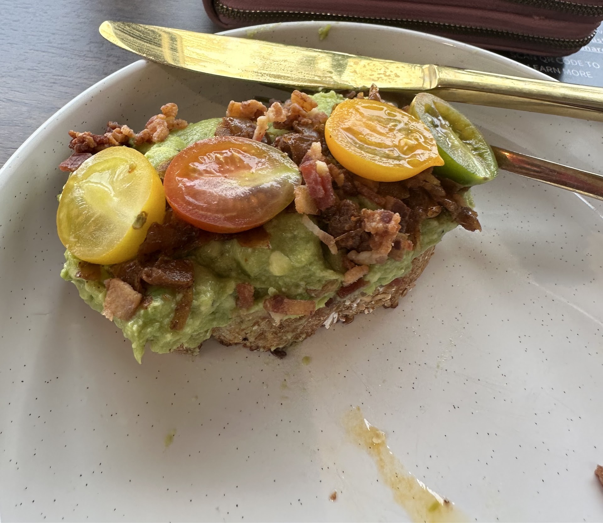The avocado toast was disappointing - 14 dollars for two slices of bread that were smaller than my iphone SE with a generous amount of avocado and two halved cherry tomatoes. I would've preferred two larger slices, even if it meant that the amount of avocado was less because it felt like the ratio was all off and I would imagine that a cafe wouldn't be cheap on bread costs that badly. The GOAT was much more appetizing, but it felt a little upsetting that the side of chips was clearly something kettle-popped like Miss Vickie's instead of something house-made considering the wrap was smaller. Additionally, the flavored lattes we ordered tasted like milk. I know not to expect a strong espresso flavor from them, and perhaps it is because I chose to get a larger size, but why am I paying a two-dollar upcharge for such a weak latte/why is it an option if it is going to taste milkier? I usually get the banana nut bread latte and it has a much stronger espresso flavor. The baristas were lovely, but I didn't receive napkins when they brought the food and I ended up bussing my own table out of sympathy.