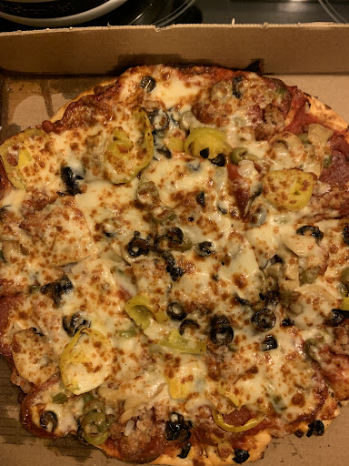 Read moreFirst time visit last week, picked up a 10" pan pizza. The box had some heft when I picked it up so I knew the pie had some substance to it, and I wasn't disappointed. Good thick crust, baked very nicely, overall a very good pizza. A bit salty at first but that was probably due to the green olives. Next day leftovers did not have that saltiness and the flavors really blended well. The one negative, and it's why I rated a 4 stars instead of a 5, was the grease content. I expect a little when getting sausage and pepperoni but it was a bit excessive on my pie, but it won't stop me from...