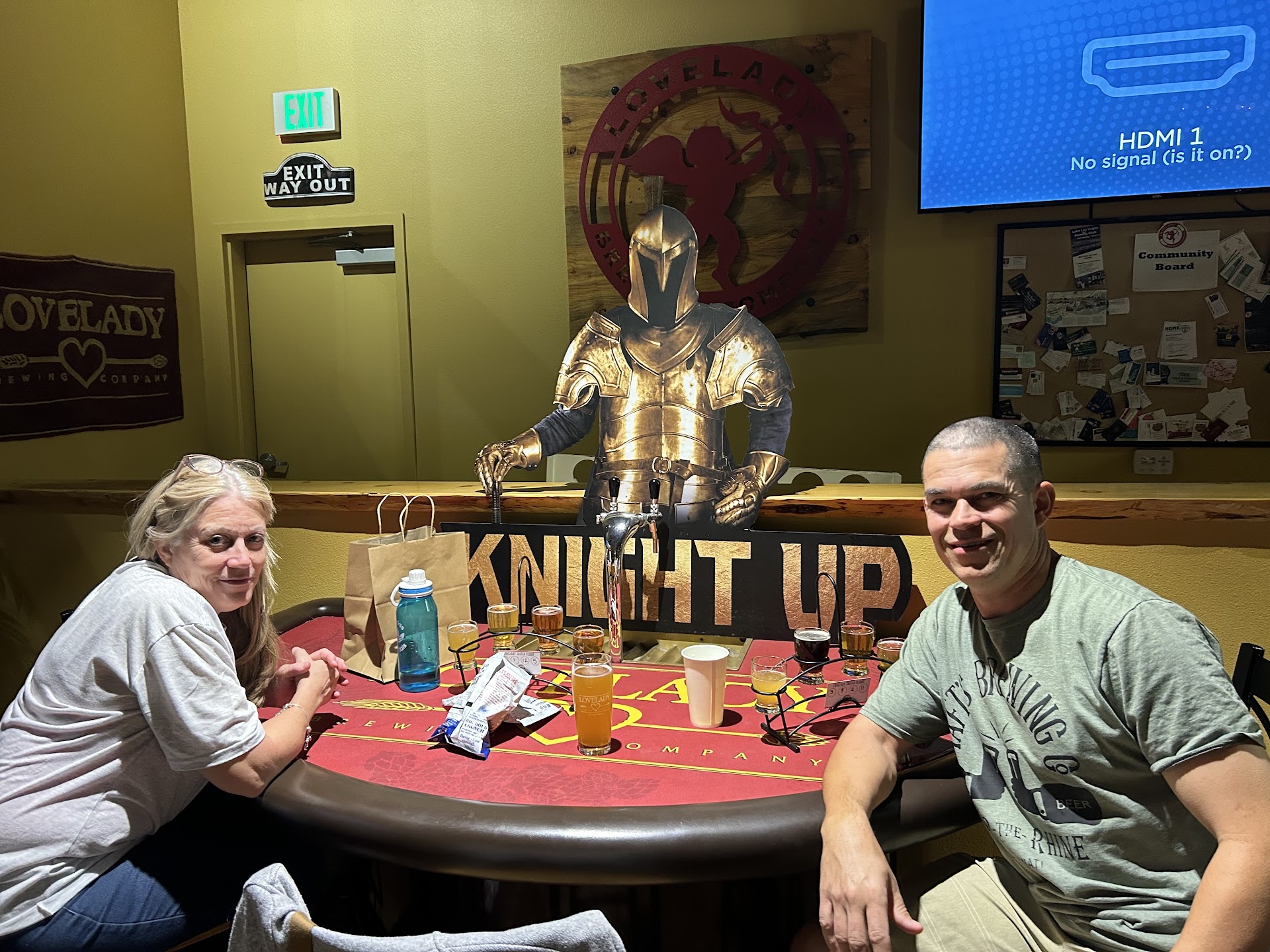Read moreWe sampled 6 different beers. They were good and distinct. The Porter seemed too peanut buttery. The Steamin' Nights had an interesting after taste on the tongue of the various peppers used. Outback and Inconceivable Eye's were very nice blends. The Love Triangle had a fruity taste with a hoppy aftertaste, for those who like the milder IPA taste. Tres Amour, a golden ale with a malt finish was one of our favorites. Finally, their Sin City Stout was a described: dry and roasty, which we took as a slightly smoky taste. I recommend you try a sampler of 6 different ones. With some many to chose from, a sampler is a good way to narrow your choices. They also fill crowlers and growlers once you narrow your choice to...