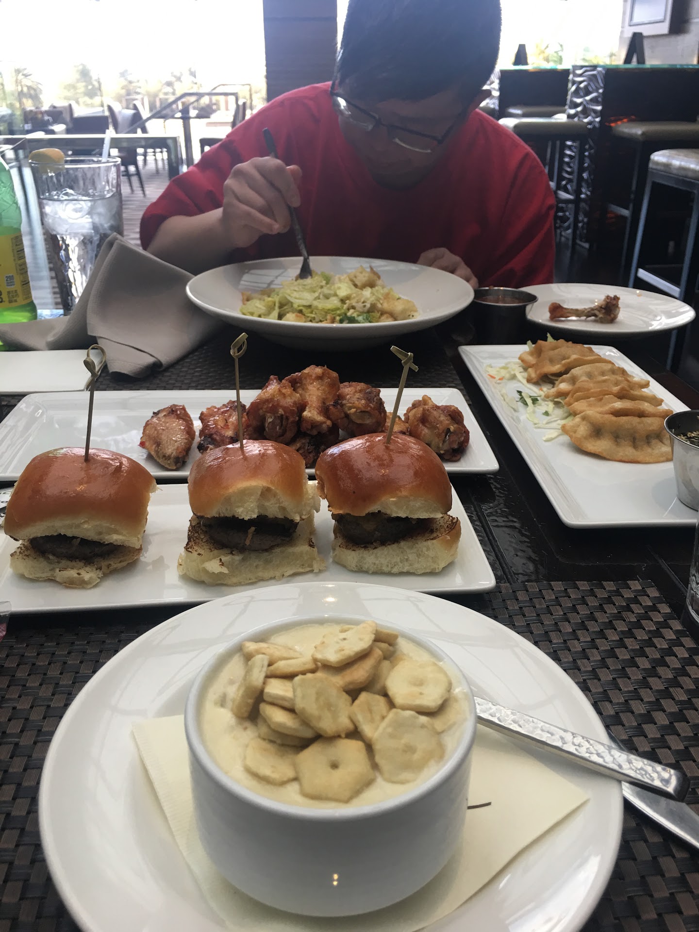 Ā Ā Ā Read moreI am very pleased with the breakfast I had. The restaurant is only open for breakfast and dinner which is not a problem since there are other restaurants in the M casino to choose from for lunch dining. The place doesnāt take reservations even for a large group. The dining area is very open - dark glass walls to separate it from the other space on either side and very high ceiling- the entrance faces the hall that splits off from the hotel lobby and the other side has bottom to ceiling glass wall facing the pool and has view of the mountain. the tables are spaced enough that you can have a good conversation going, Comfortable spacing of tables. There is outside seating overlooking the pool. I ordered coffee (good coffee from Boydās Seattle) and hueves rancheros. Very filling- tortilla layered with refried beans, chunky tomato salsa , peppers, fried eggs, large jalapeƱo pepper on top and a side of sour cream. Very flavorful and just the right...