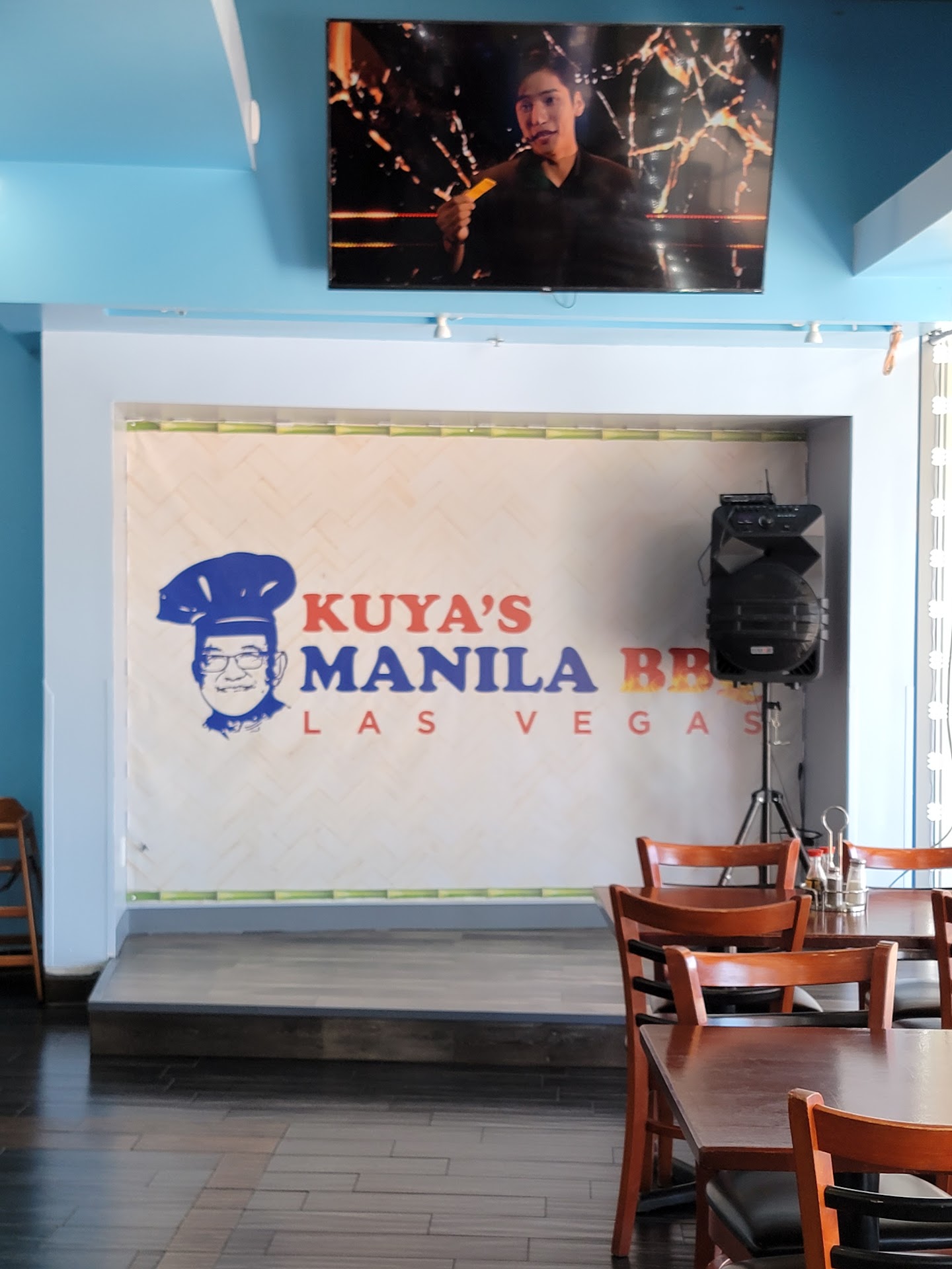 Manila ambiance: A casual open dining area that's very clean with mobile tables in case you need to push them together for a larger group. The posted menu showcases the combos and prices clearly to make ordering easy.