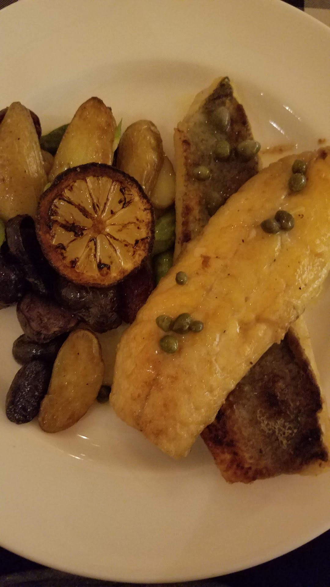 Read moreI was greeted by a very friendly gentleman at the host stand and quickly seated in a comfortable leather chair. I sat front of the kitchen that is wrapped around by bar seating giving open kitchen a very literal meaning. Damon was the highlight of the service, he was the runner/assistant that should have been my waiter. He floated table to table to make sure everyone was happy. My server was "odd". Appearing at the table and not speaking until I would turn and look up and see him hovering over me. But he was nice, and the service was quick and efficient. I ordered stuffed mushrooms, grilled branzino, a side of asparagus, and side order of penne pasta in Vodka sauce. The mushrooms we're great. Just was disappointed it was only two mushrooms 😒. The Branzino was great. Grilled with the skin ok making a traditionally flaky fish extremely crunchy and more substantial. I wish there were more capers and that the side of potatoes had more lemon butter on them as they were bland and dry. The asparagus was perfectly with just the right amount of garlic topped with cheese. And the penne vodka was fantastic the pasta was Al dente in the sauce not overpowering not too heavy in one exact ingredient just flavorful and delicious. Overall a real great experience I look forward to...