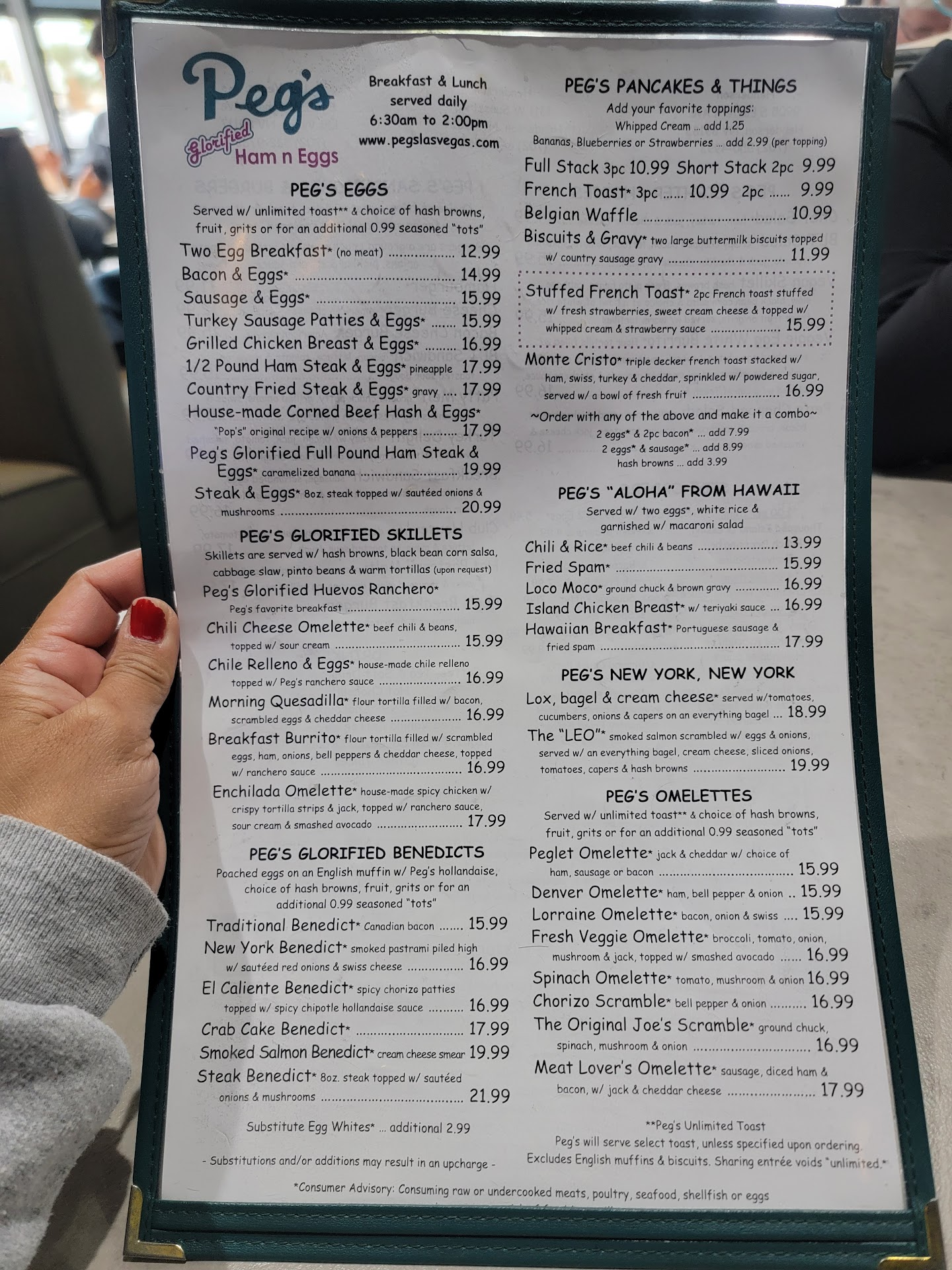 Update: 11/9/24 My wife and I have visited this location two more times and each visit has shown that this location has progressively worsened with each visit! This last visit confirmed for us we are never coming back to this train wreck. The steak wasn’t cooked evenly. One side was well done and the other, I kid you not was raw. It was so grisly and untrimmed it was ridiculous. One bite had undercooked fat the next was like rubber bands. The hash-browns had the consistency of mashed potatoes in the middle and light golden brown on the outside that was soft with no crispness. The pancakes are 8” to 9” they came out warmish between the cakes and the syrup came in a little metal pitcher that had about 3oz of syrup that wasn’t hot. I chucked and reminded the waitress about the sausage and 3oz of syrup was laughable and to bring me another. It was at that time I asked were the soft butter for the cakes was and she pointed to the wrapped butter that was hard and cold. That was frustrating. When she came back to our table and asked how the food was I told her I wasn’t happy with the browns but I could’ve told her nothing on this table was worth the price I was going to pay. She tried to give me new brown that I told her not to worry about but at that point in time I wasn’t going argue or force myself to eat another bite. The prices for the food were high as expected but now the price vs quality is a rip off. I’ll never be back and I don’t expect there are many 2nd visits if this last visit is normal for us. I would describe my wife’s food experience but that wouldn’t made this review any better but she agrees with me overpriced scraps for the bogs shouldn’t...
