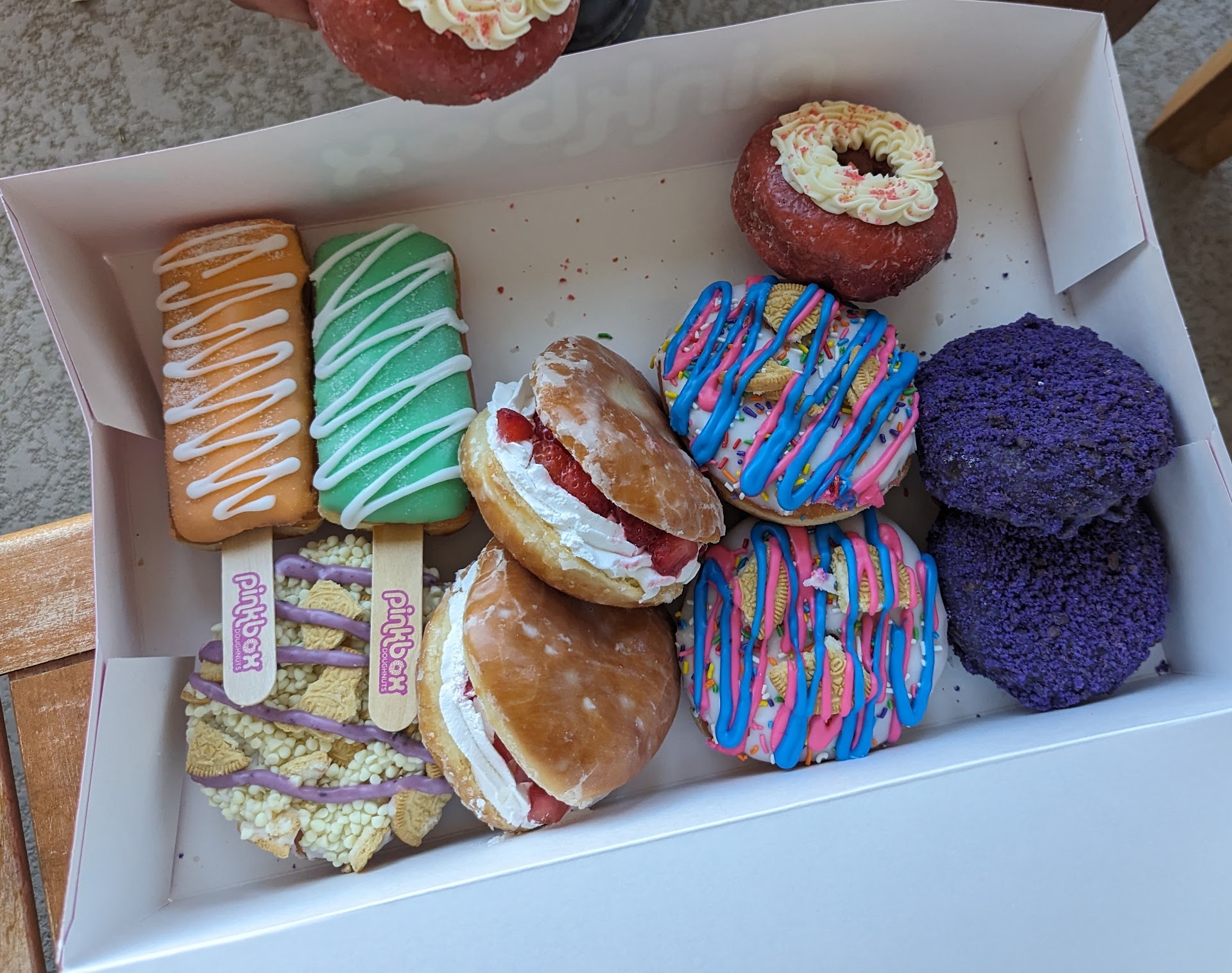 Don't Be Salty: Pinkbox Doughnuts was established in 2012 with multiple locations in the Las Vegas area. They are known for their wildly creative doughnuts, witty marketing approach, and crazy interior store features. They are also the official doughnut partner of the Las Vegas Raiders and Golden Knights. The official description of the Don't Be Salty doughnut from Pinkbox is "maple frosted raised shell with a hard white chocolate bottom filled with caramel cheesecake, topped with white whip, drizzled with caramel and sprinkled with sea salt". After taking my first bite, I was initially nonplussed as unlike many salted caramel desserts I've encountered, this was actually relatively salty! If salty isn't your thing, don't get scared off. The salt comes from the drizzle, so it's not in every bite and it is not overpowering. The maple flavoring of the icing is nice but gets somewhat lost with everything else going on (and those other things are phenomenal). The major welcomed distractions to the taste buds are the white chocolate bottom and cheesecake filling, both make this doughnut sui generis. In my opinion the caramel cheesecake filling is perfect, possibly the best filling I've ever had in a doughnut (and I've eaten my share). As for the white chocolate bottom, I've never seen that before and I've been to the revered Donut Bar in San Diego and Five Daughters Bakery in Nashville. This was my favorite doughnut from my Pinkbox visit, although all of them were phenomenal, Doughboy approved! My top doughnut shops: Donut Bar (San Diego) Pinkbox Doughnuts (Las Vegas) Everglazed (Disney Springs) Cranky Al’s (MKE) Krispy Kreme (various locations in different...