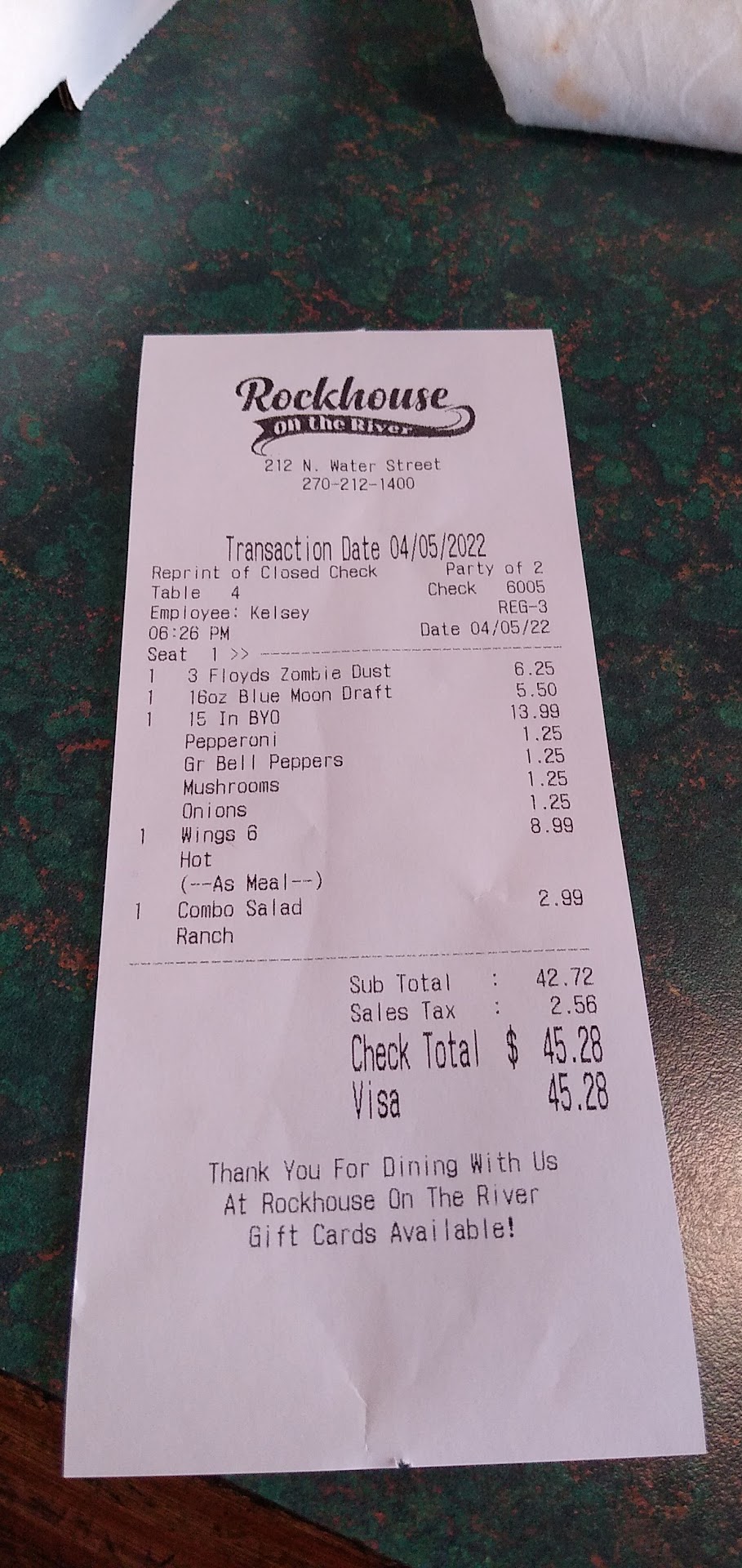 Read moreI'm shocked this place has a 4.6 rating! My experience goes from bad to worse. The pepper shaker on the table had some kind of funk on it (not clean). My wife ask for a glass for her beer, the chilled glass revealed finger prints inside AND lip prints around the rim! (I wonder what mine looked like before the beer was poured in). Then the food comes out. The bone in chicken wings were VERY fatty. I picked them apart and got enough meat from 6pcs to fill a shot glass. I gave the plate of fat and bones to the server and told her to tell management that was pathetic. As for the pizza, (since the wings provided nothing for hunger) I ate a piece. I've had better pizza from kroger (I'm serious). By the time we finished a slice of pizza and our beers, no one from management came out to see us. We had been to the Rockhouse a few times before at their old location. My wife liked it but I always found it mediocre. Be assured, this is the last time they will ever...