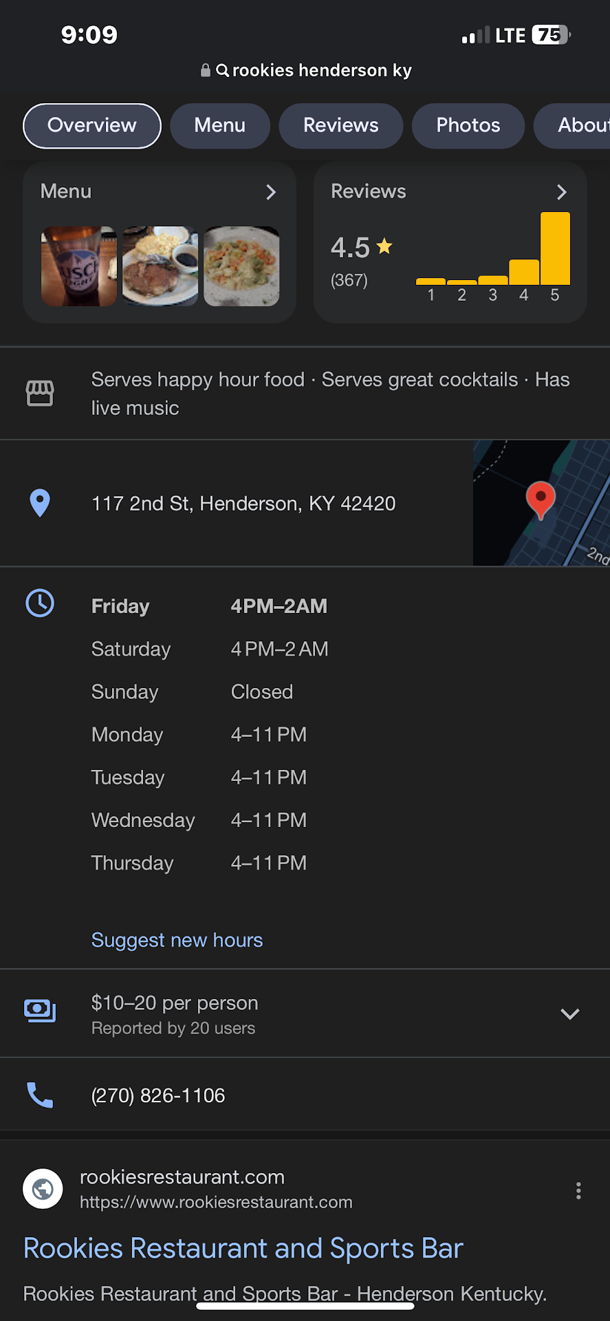 This was a terrible experience at Rookies. You need your hours on google to reflect what they really are for the bar and restaurant. I later went to your website that says you close at 10, it doesn’t says the kitchen closes and hour before. All very confusing for customers. This isn’t the 1st time someone has complained about the hours (as I look at other reviews) so to me that says Rookies doesn’t care about confusing their patrons. This was my 1st experience on the family side because I had my baby. I never want to sit on this side again, the service is better in the bar. My server didn’t know anything and checked on us once. I didn’t like my experience or service. All the Henderson locals hype Rookies but it’s trash now. Not what it used to be… 0 of of 10, do not recommend! Not worth the...