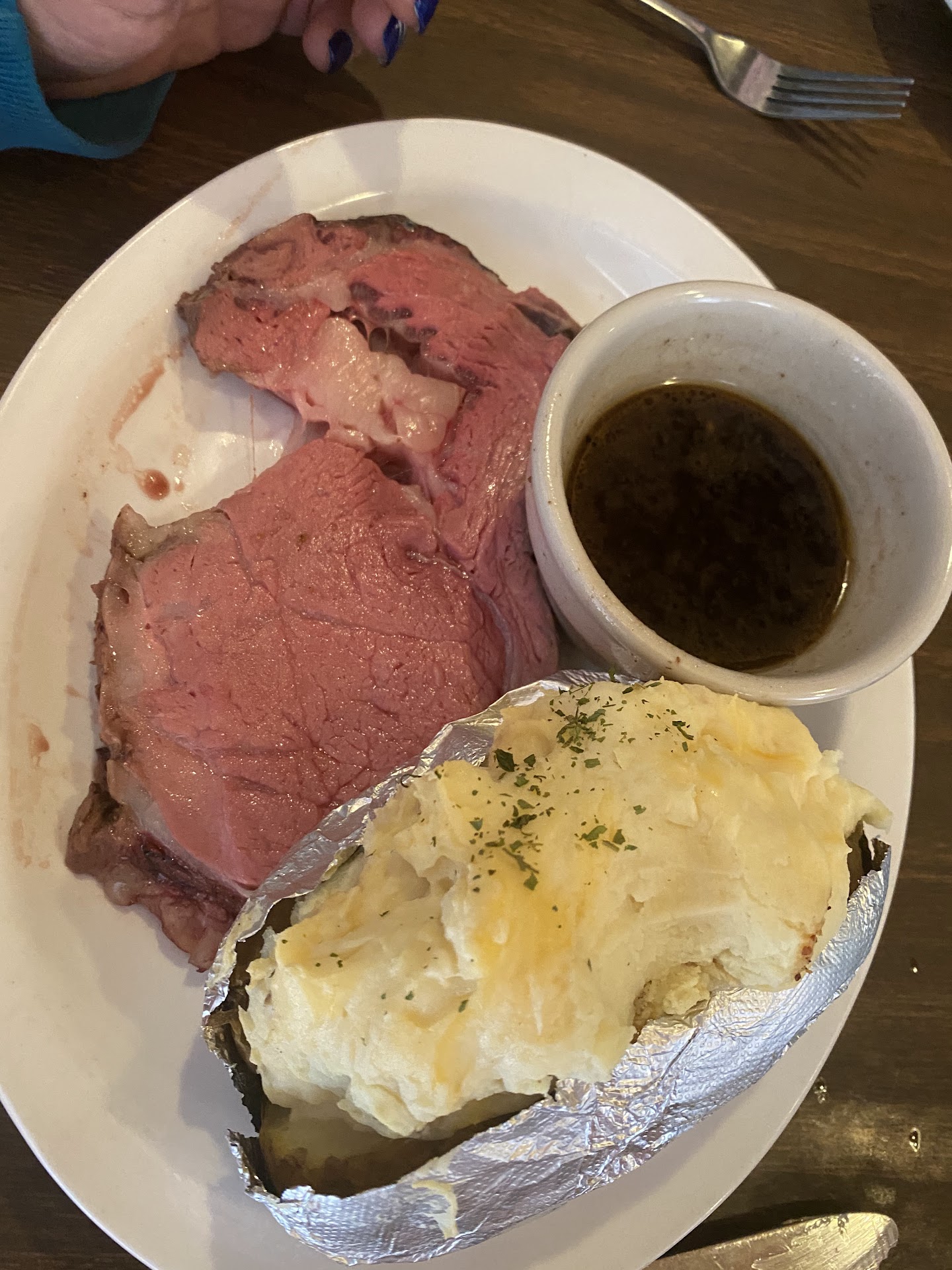 Hubby enjoyed his chicken tender and the fried green tomatoes were good. I asked for some bread and butter she she said it was wrapped up for the night. WELL UPWRAP IT AND BRING ME SOME. If the kitchen is open until 9 everything in it should be available until then.